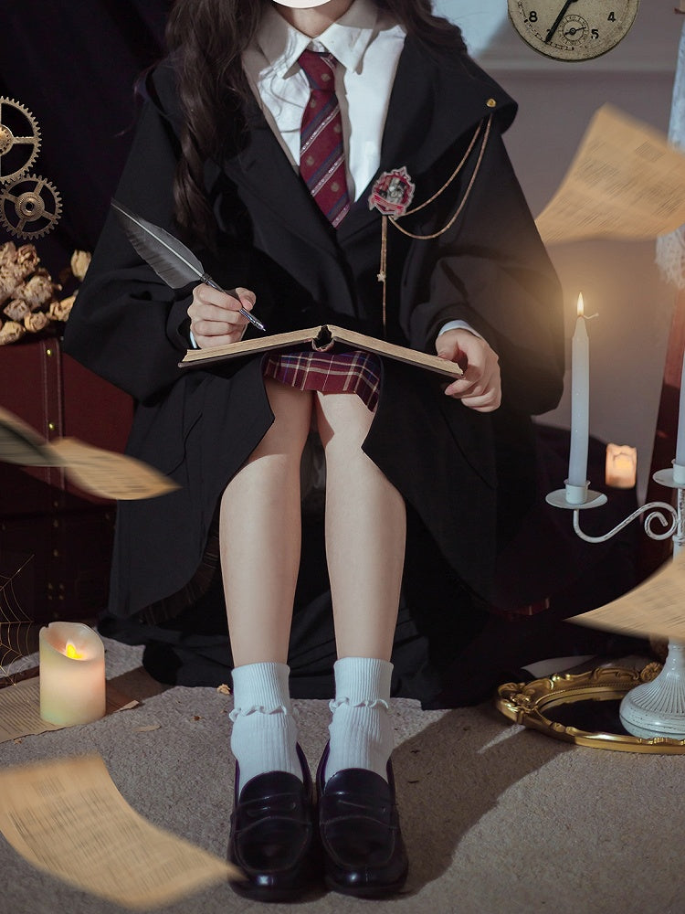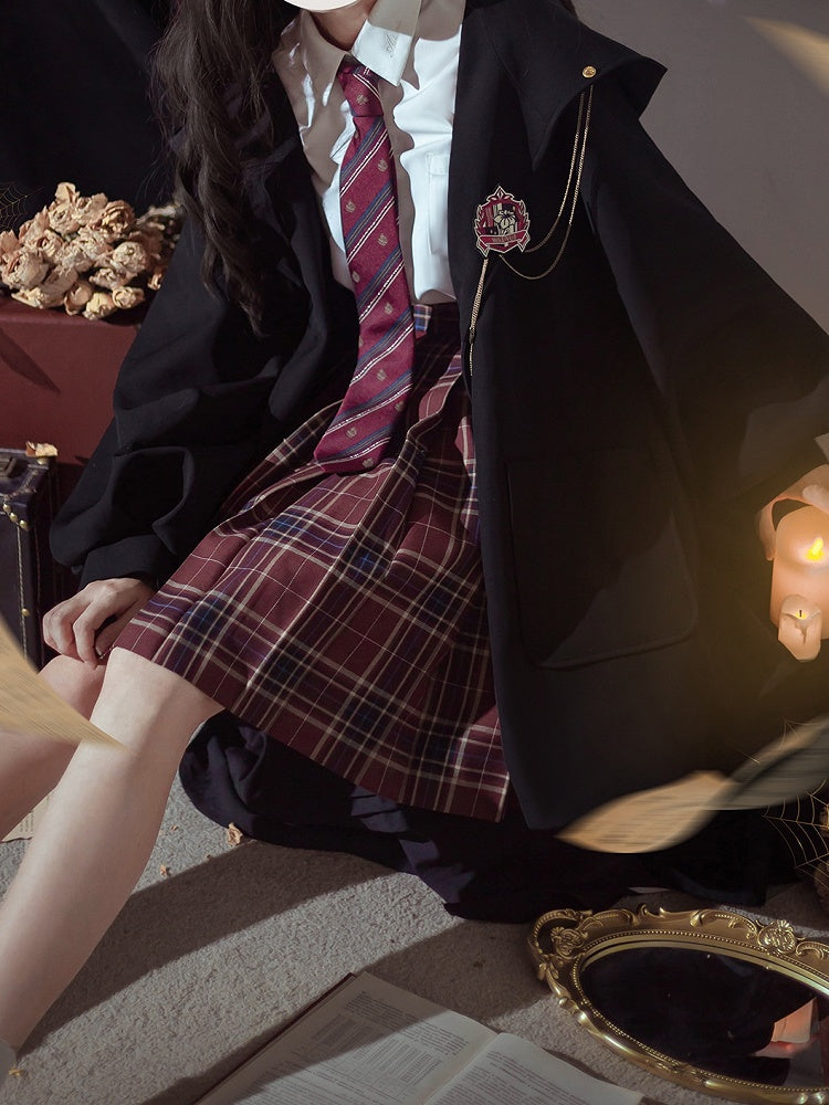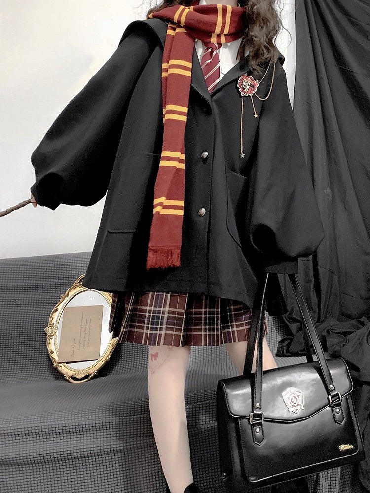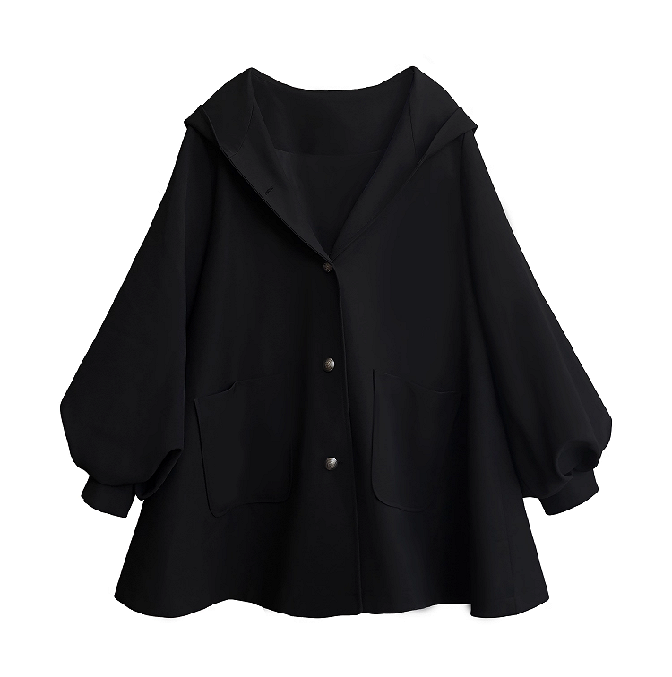 Schwarzer Preppy Vintage Kapuzenmantel Normale/Verdickte Version für Herbst und Winter