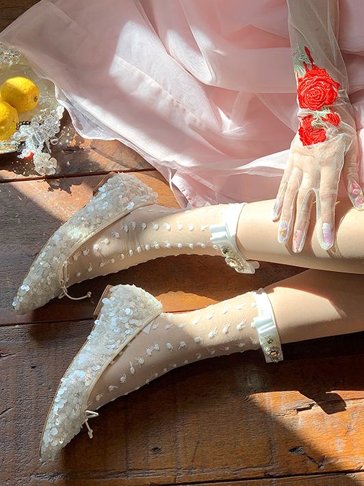 Strassverzierte Socken mit Schleife Weiß/Grau/Schwarz