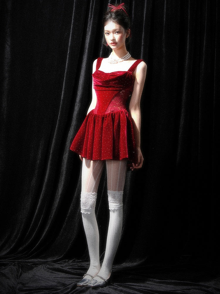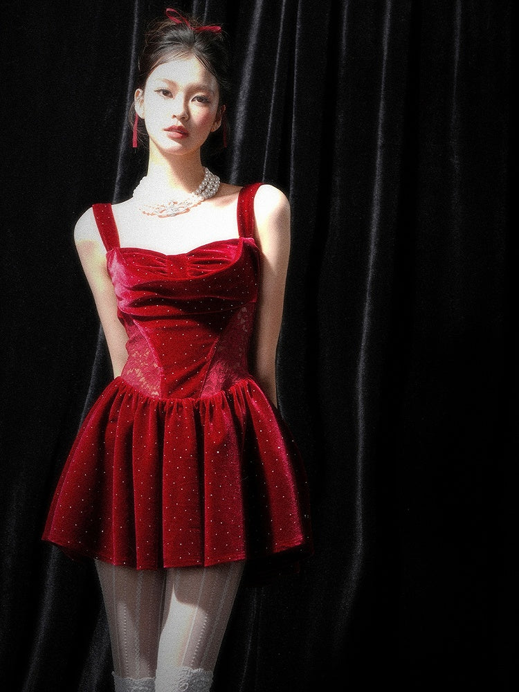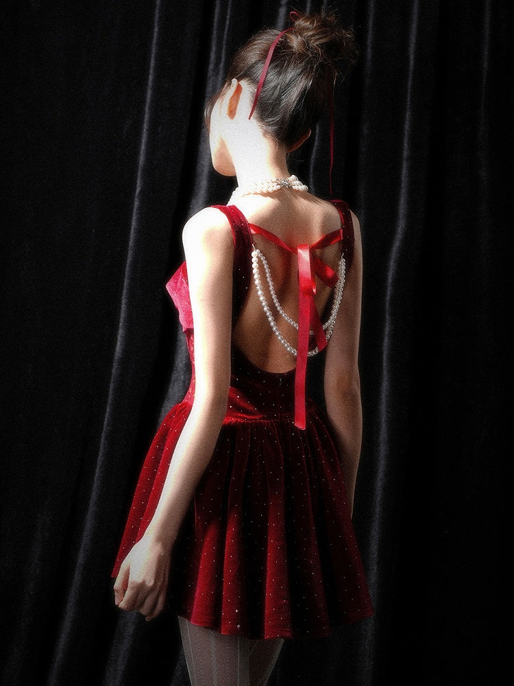 Dieses bezaubernde, mit Strasssteinen verzierte, rückenfreie, weinrote Weihnachtskleid besticht durch exquisite Strassverzierungen und zarte Perlendetails, die für einen Hauch festlicher Eleganz sorgen. Perfekt für stilvolle Feiern!