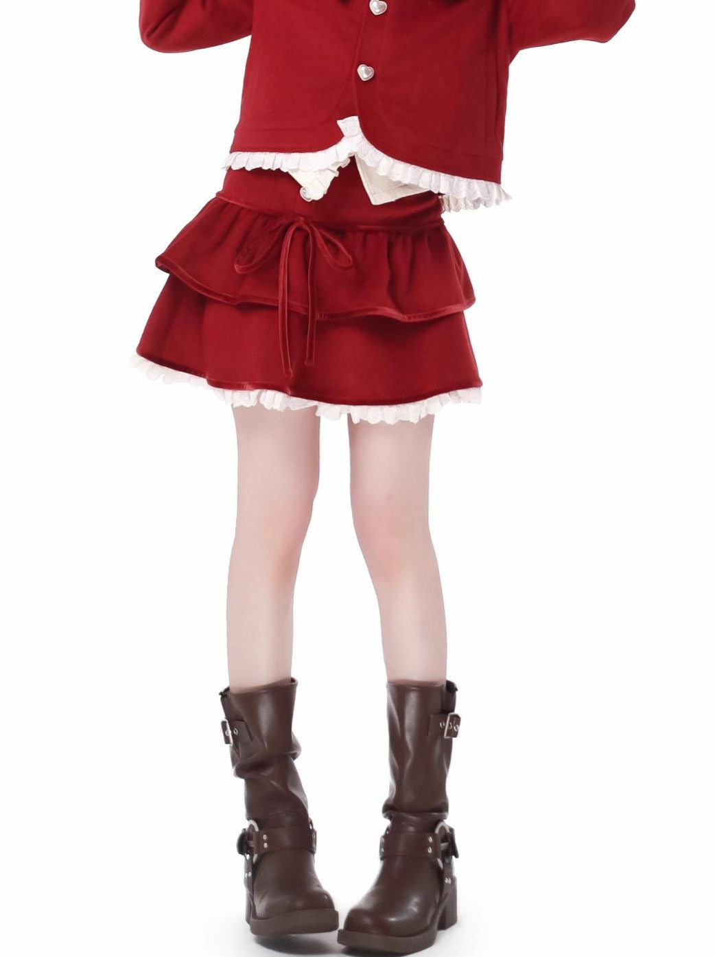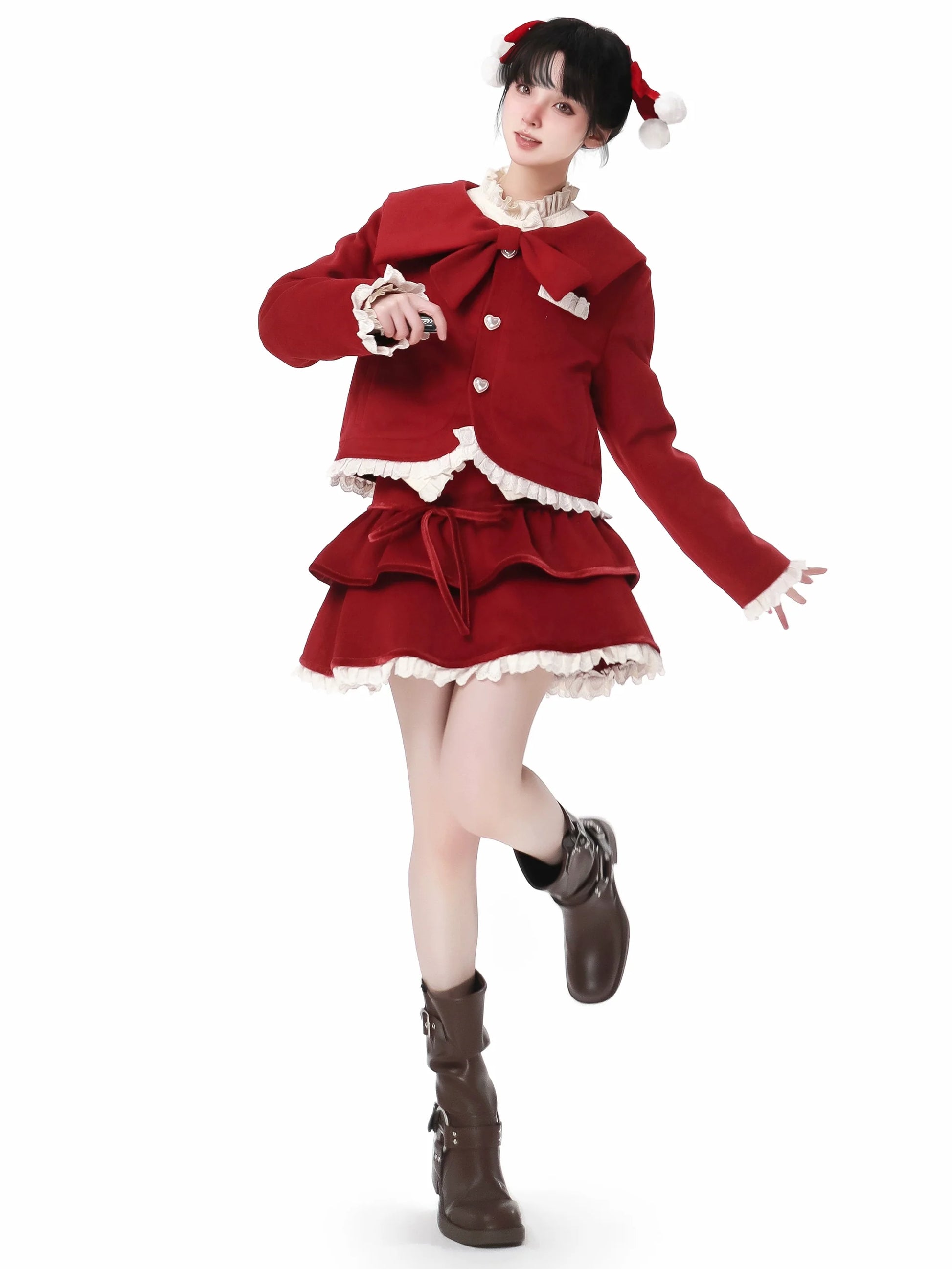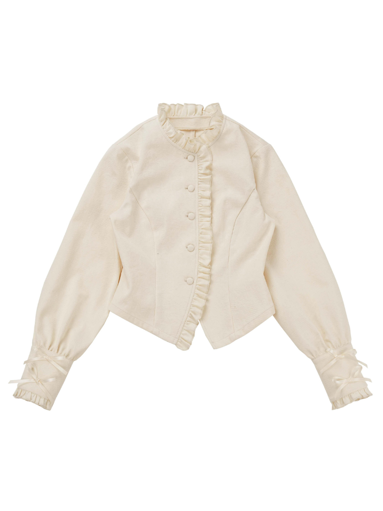 Dieser bezaubernde Anzug besteht aus einer kurzen Jacke mit Rüschenband und einem Hemdblusenrock in der Farbe „Singing Stand“. Perfekt, um jedem Outfit einen Hauch von Niedlichkeit zu verleihen.