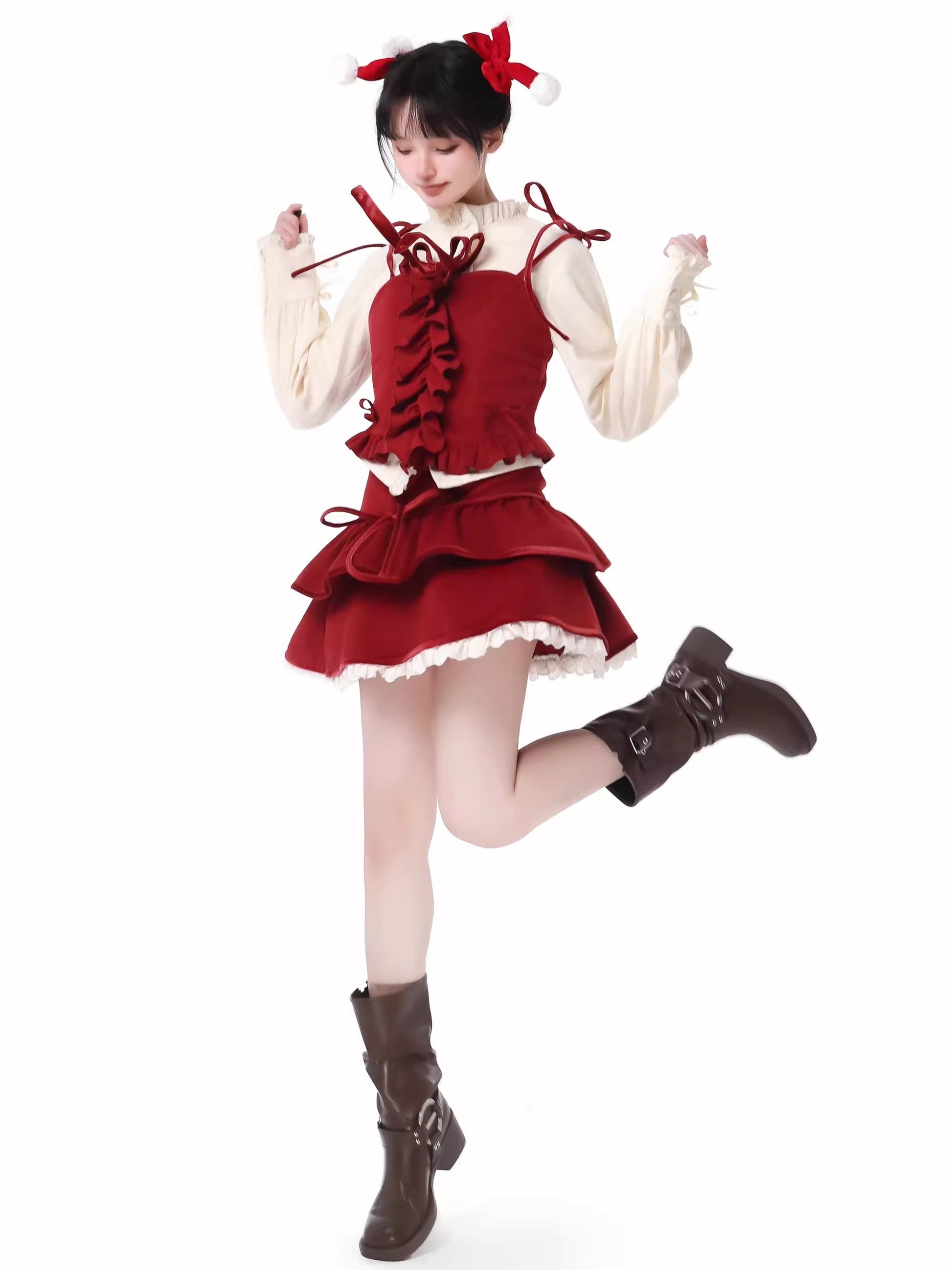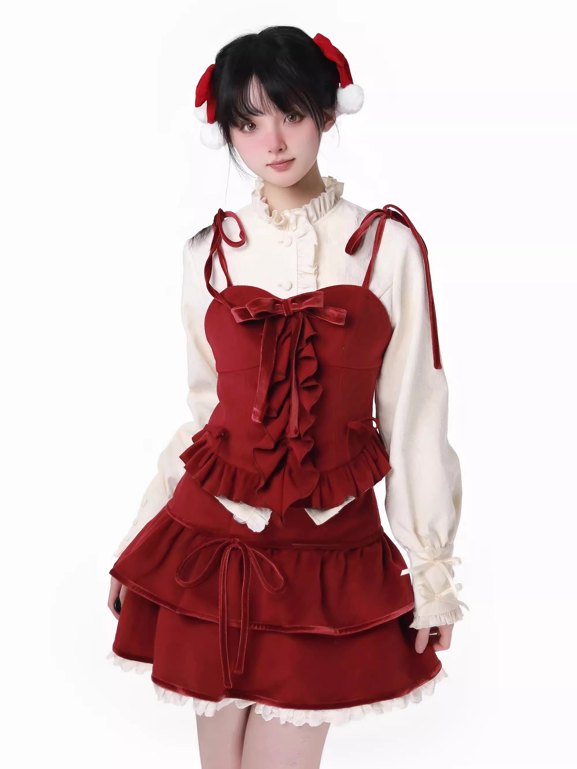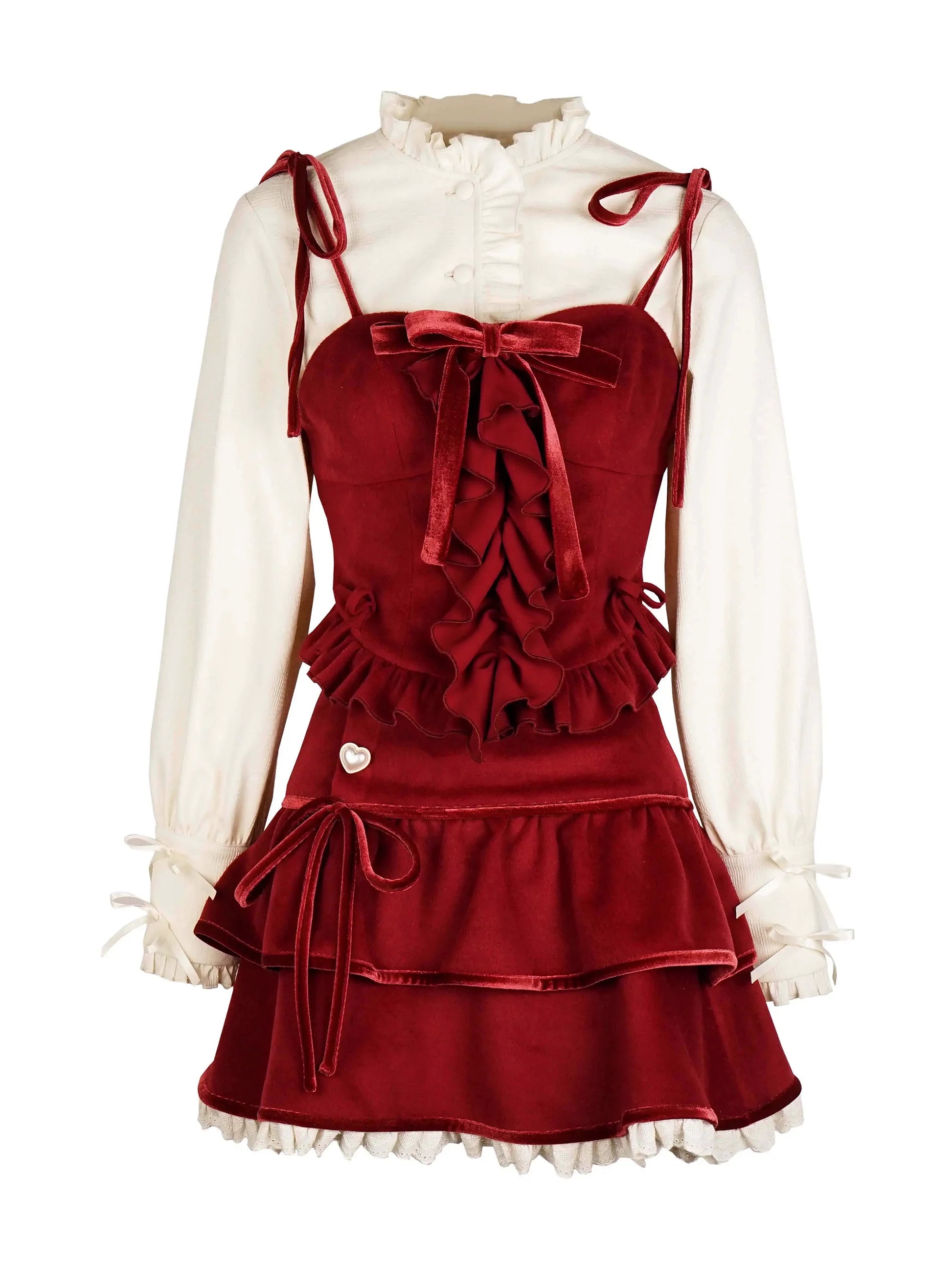 Dieser bezaubernde Anzug besteht aus einer kurzen Jacke mit Rüschenband und einem Hemdblusenrock in der Farbe „Singing Stand“. Perfekt, um jedem Outfit einen Hauch von Niedlichkeit zu verleihen.