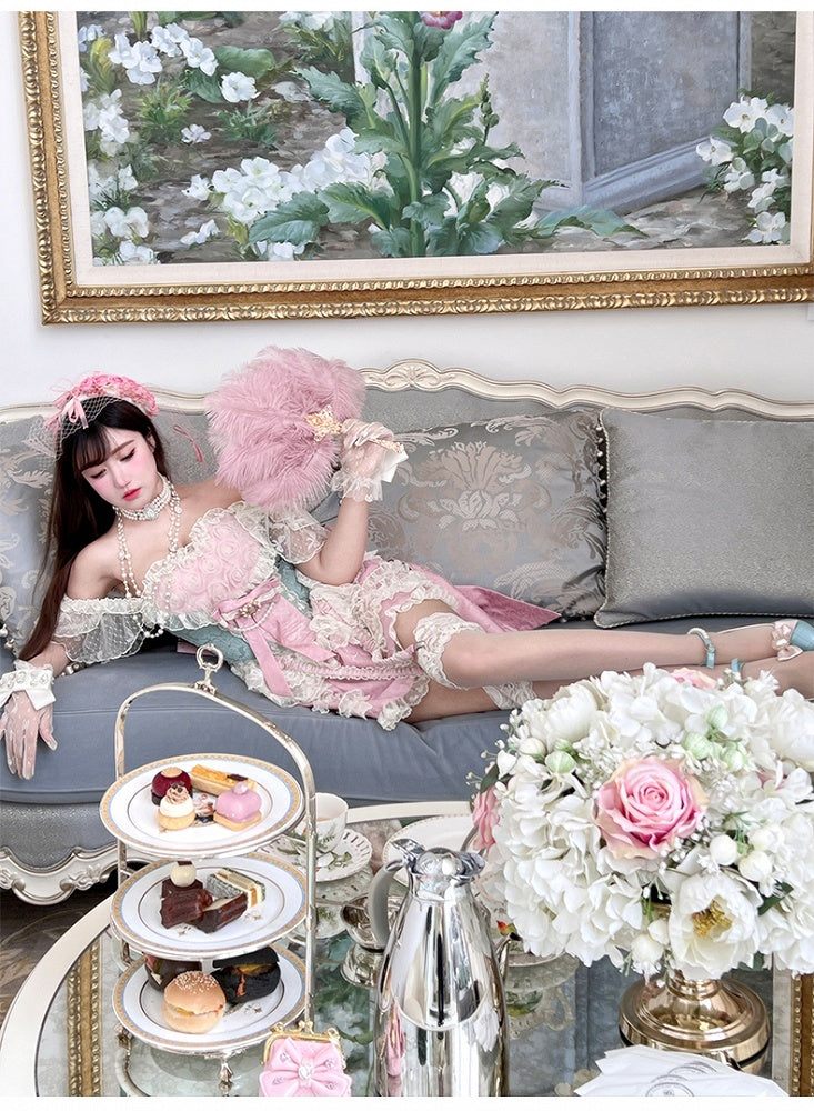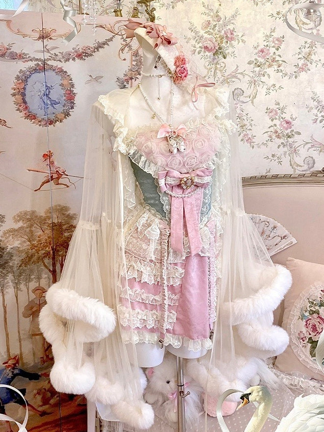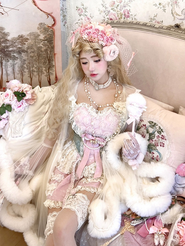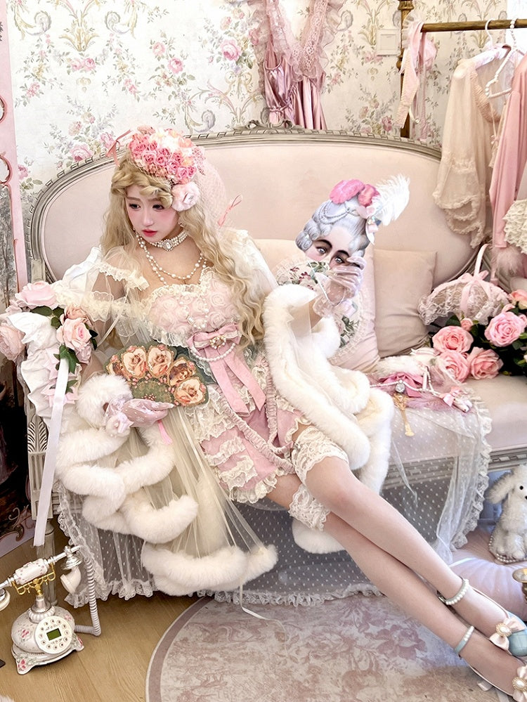 Rosa und weißes Old School Lolita Fashion Kleid Bowknot Detais Lolita JSK Set