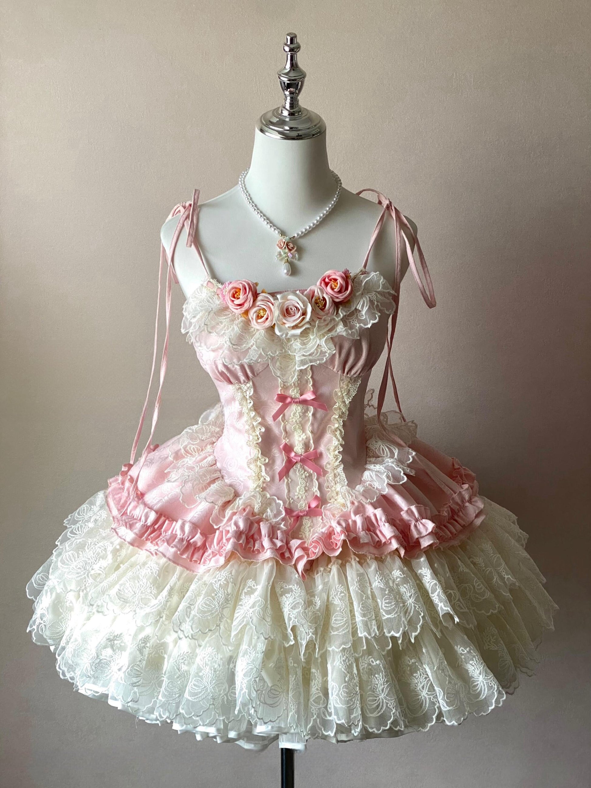 Rosa und weißes Old School Lolita Fashion Kleid Bowknot Detais Lolita JSK Set
