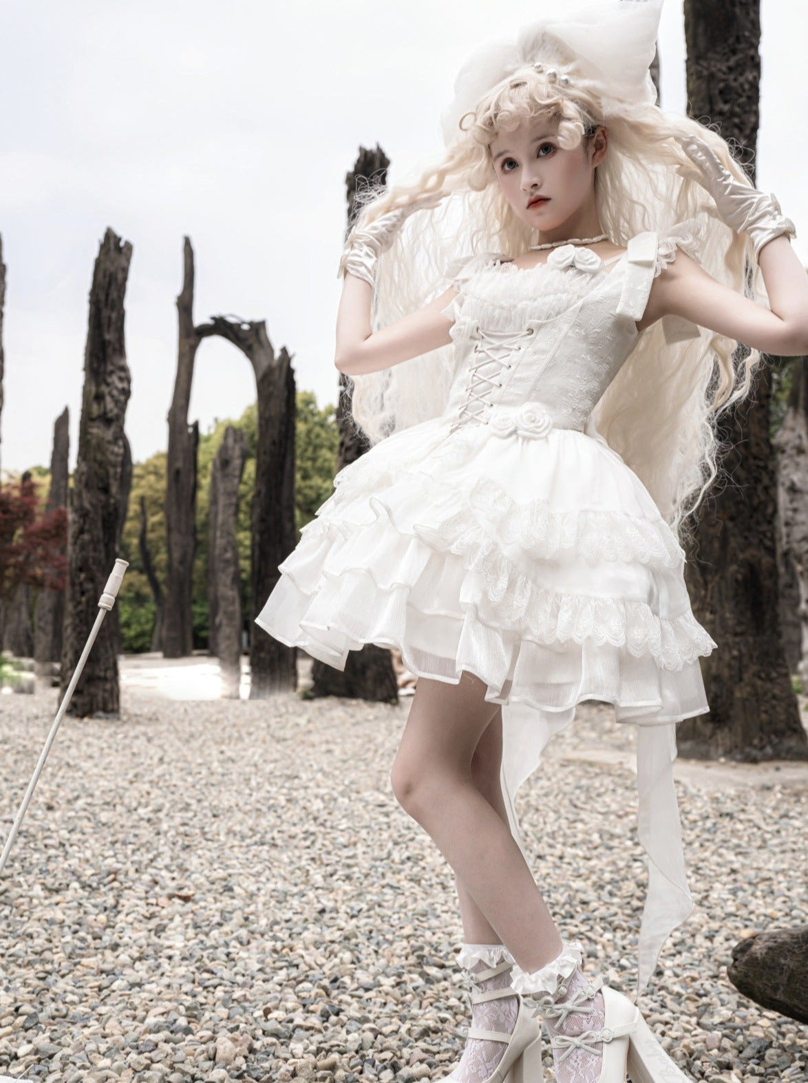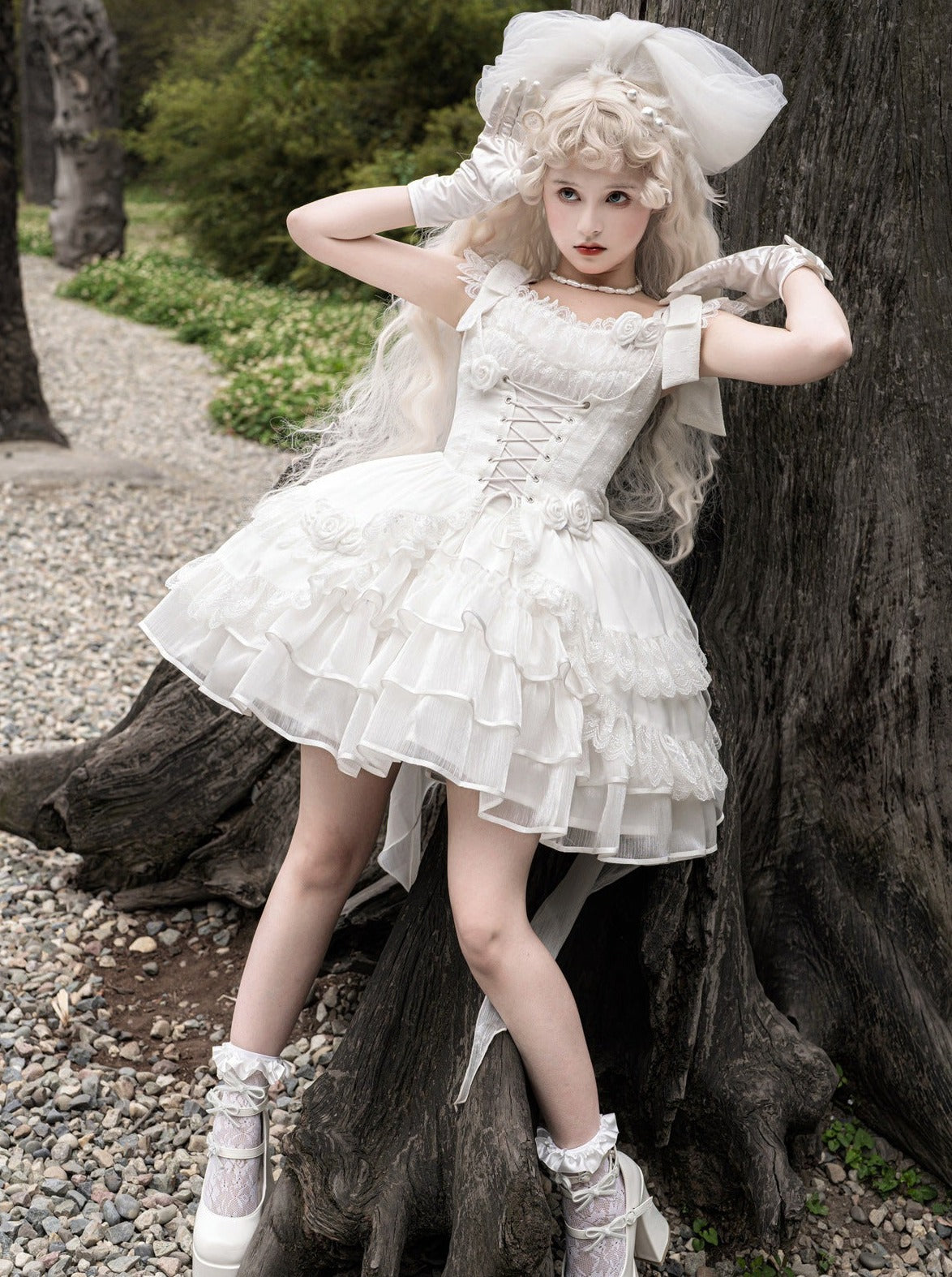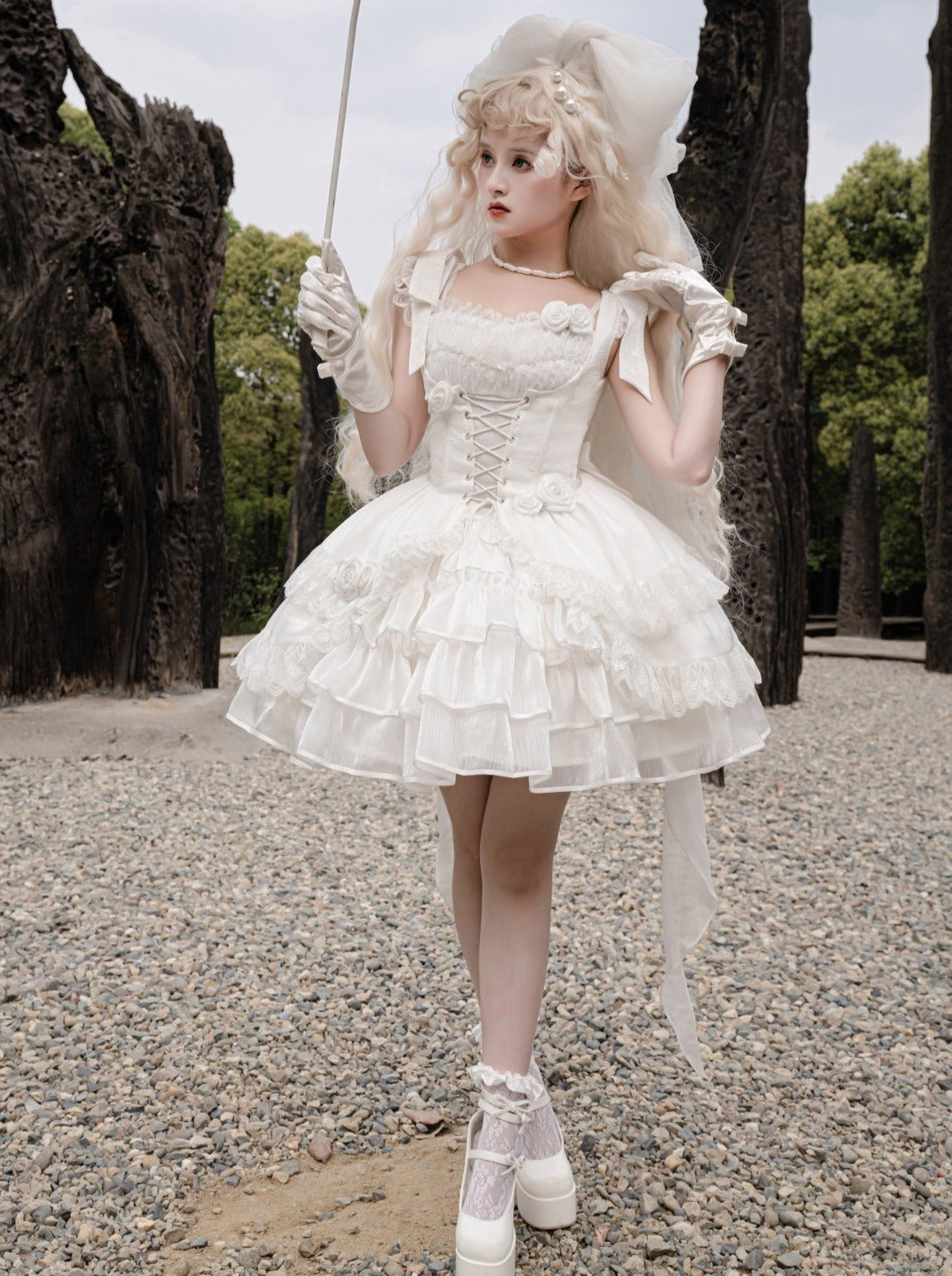 Rosa und weißes Old School Lolita Fashion Kleid Bowknot Detais Lolita JSK Set