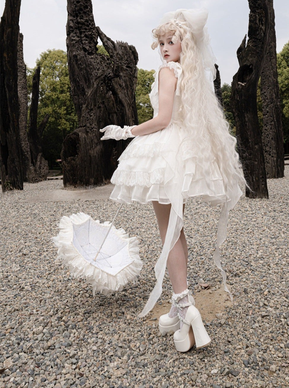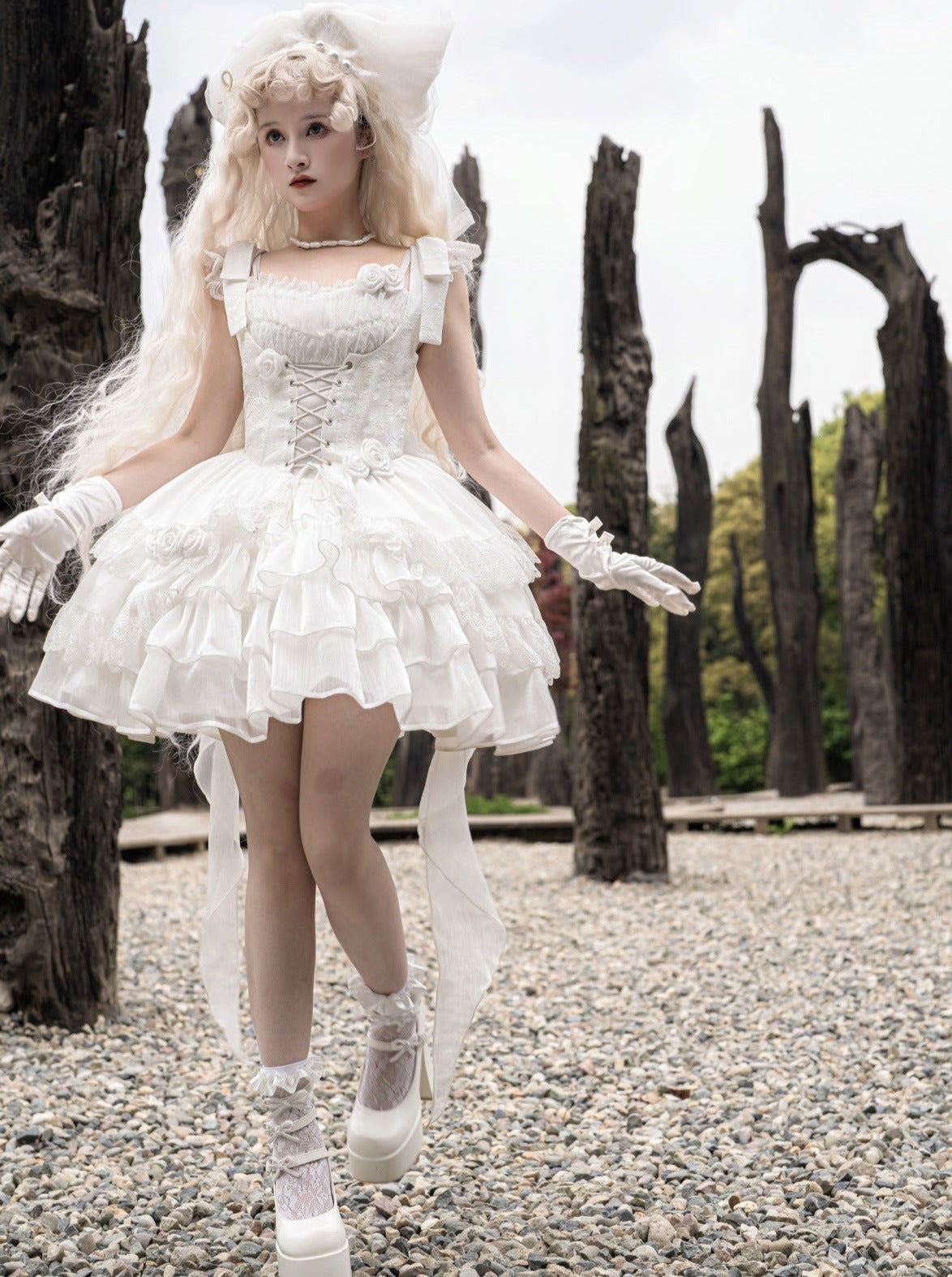 Schwarz-weißes Old School Lolita Fashion Kleid Bowknot Lolita JSK Set