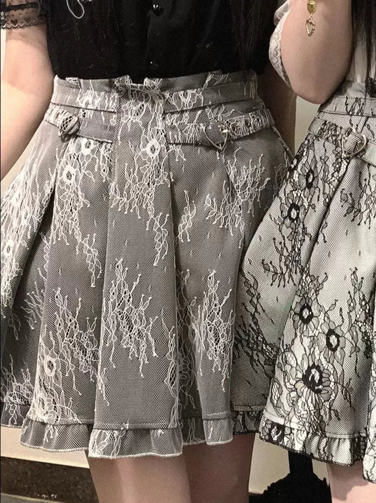 Verlieben Sie sich in unseren Rose Heart Lace Love Buckle Skirt! Dieser süße Rock besticht durch sein herzförmiges Spitzendesign und einen praktischen Schnallenverschluss. Perfekt, um Ihrer Garderobe einen Hauch von Süße zu verleihen.
