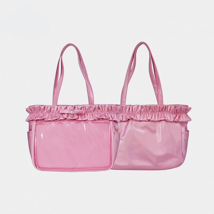 Rosarote Ita-Tragetasche mit Rüschenbesatz und Strass-Schleife