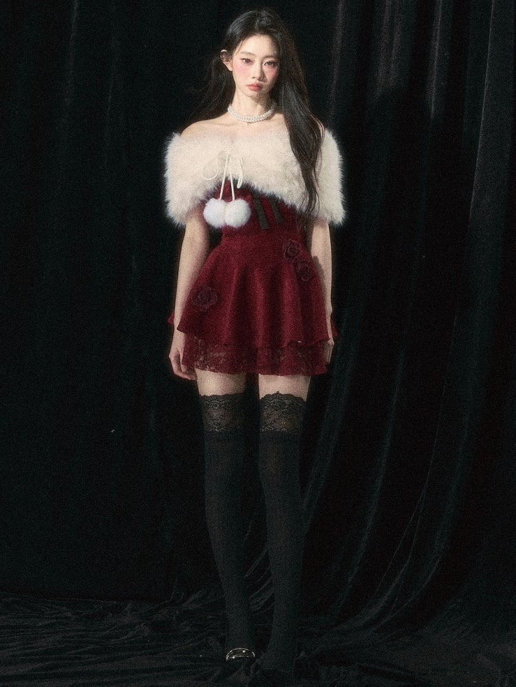 Dieses atemberaubende Set besteht aus einem weinroten trägerlosen Kleid mit zarten Rosen und einem flauschigen Schal – perfekt für Ihre Feiertage. Das Kleid vereint mühelos Eleganz und Komfort und macht Sie zum Mittelpunkt der Aufmerksamkeit. Bleiben Sie gemütlich und stilvoll mit diesem schönen Ensemble.