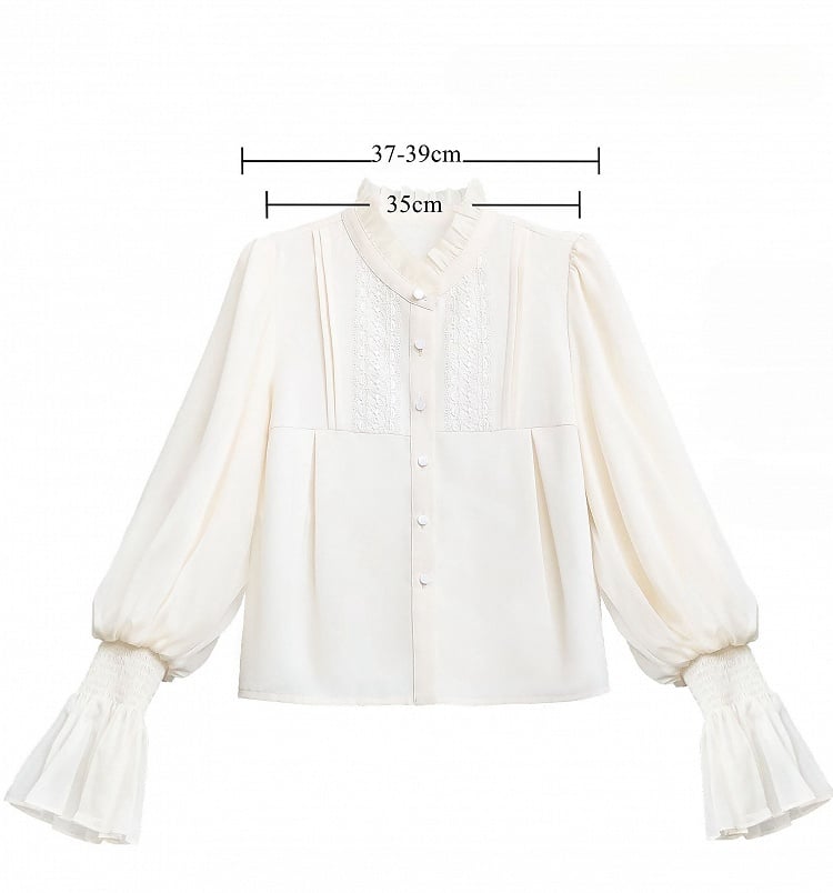 Weißes Chiffonhemd mit Rüschenausschnitt und Ballonärmeln