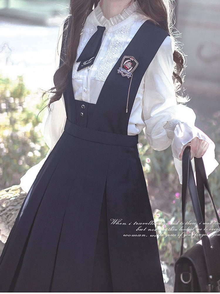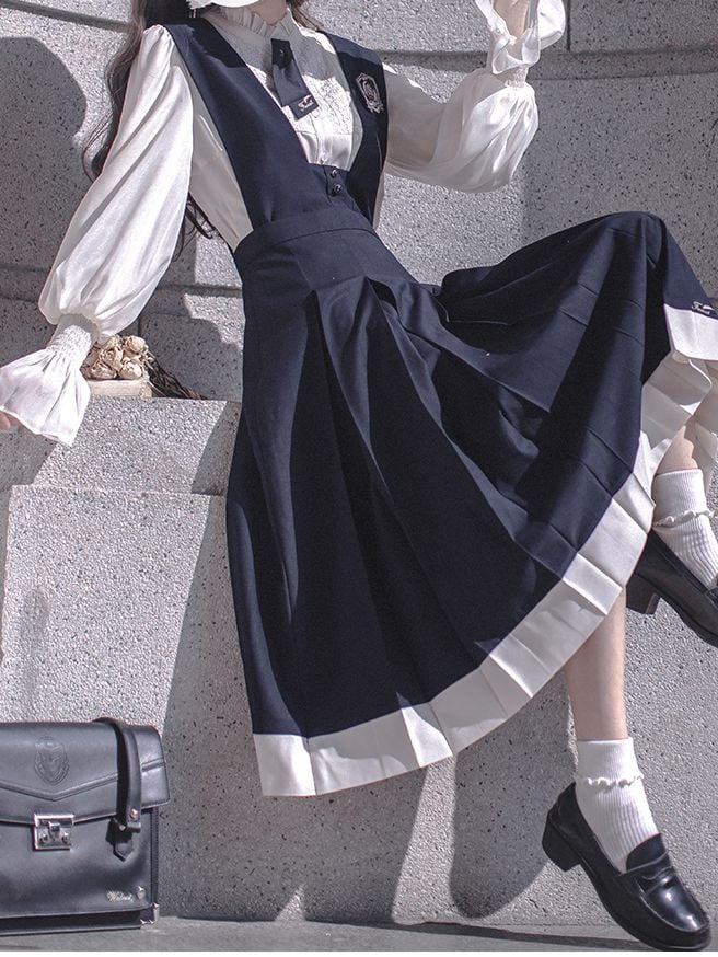Schwarz-weißes Old School Lolita Fashion Kleid Bowknot Lolita JSK Set