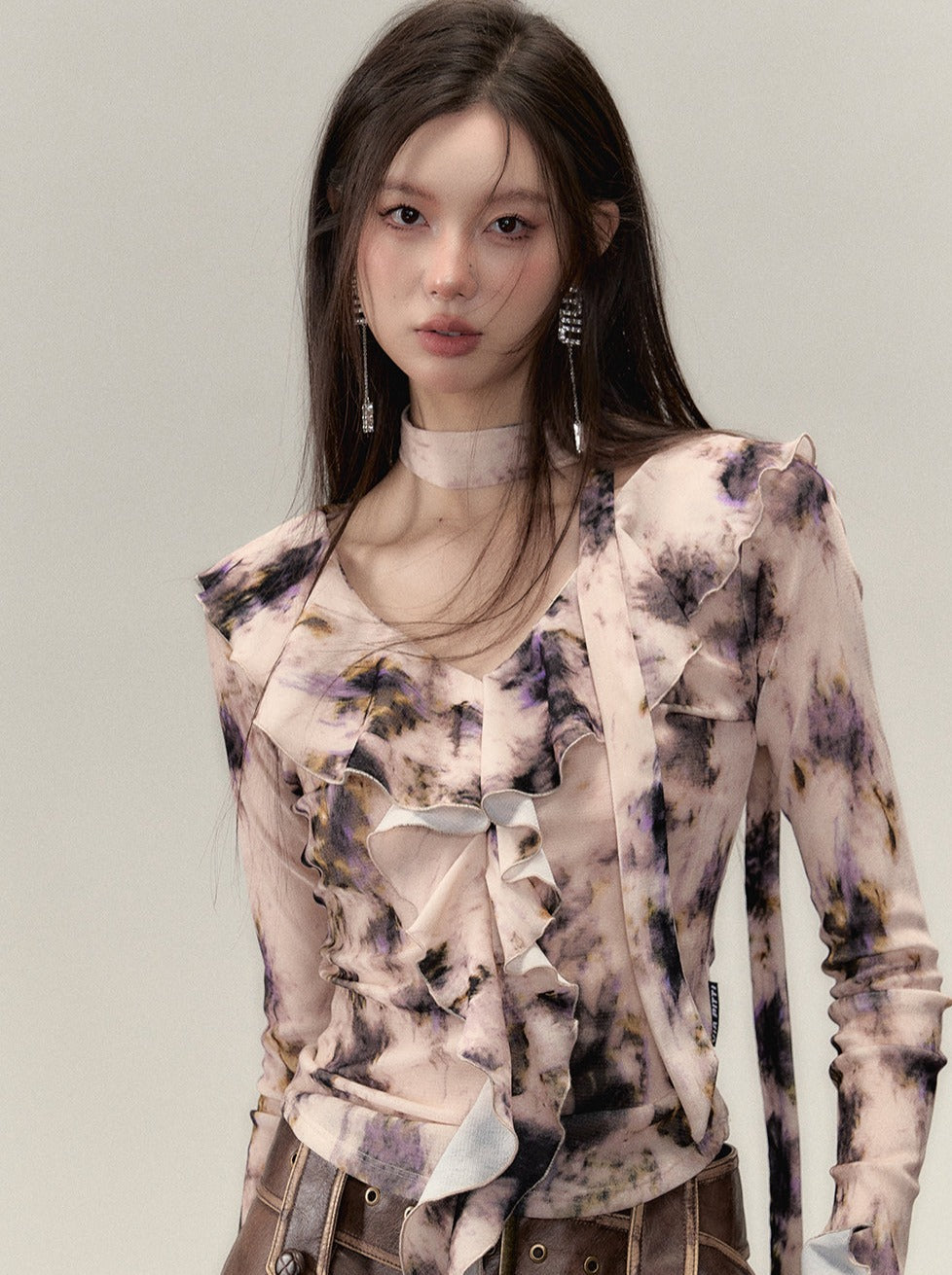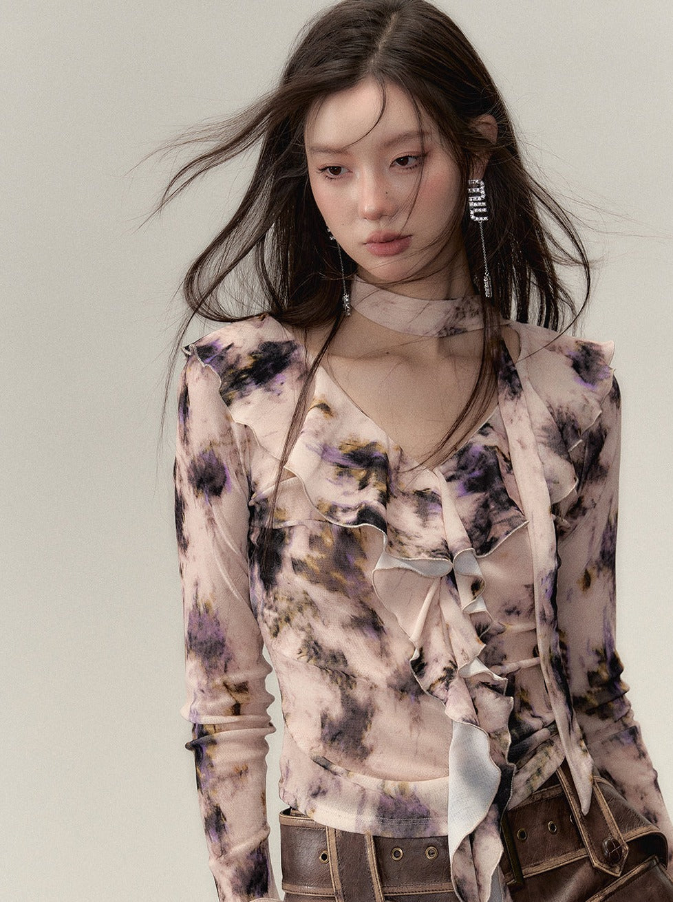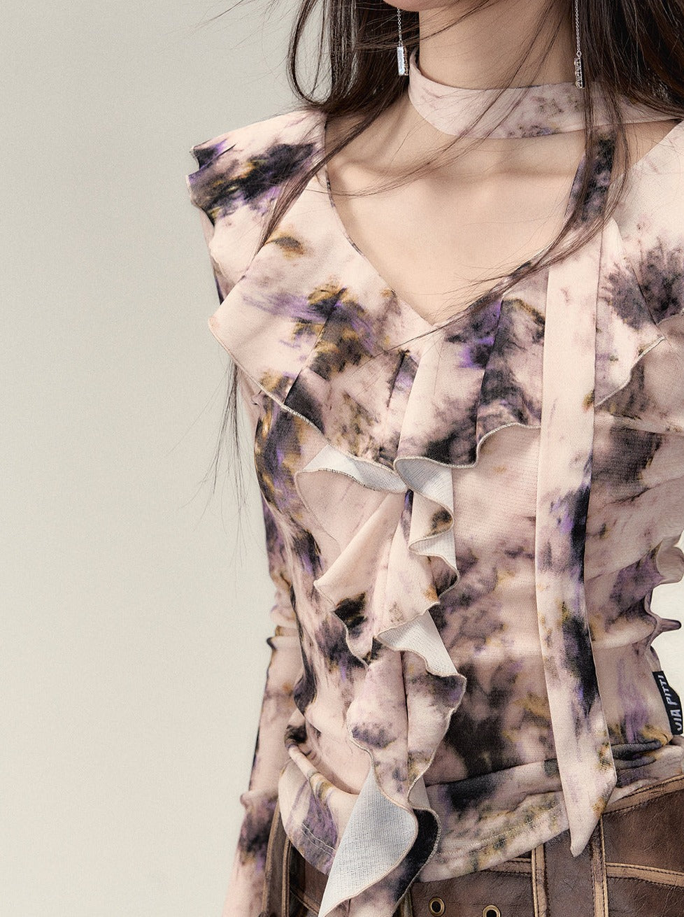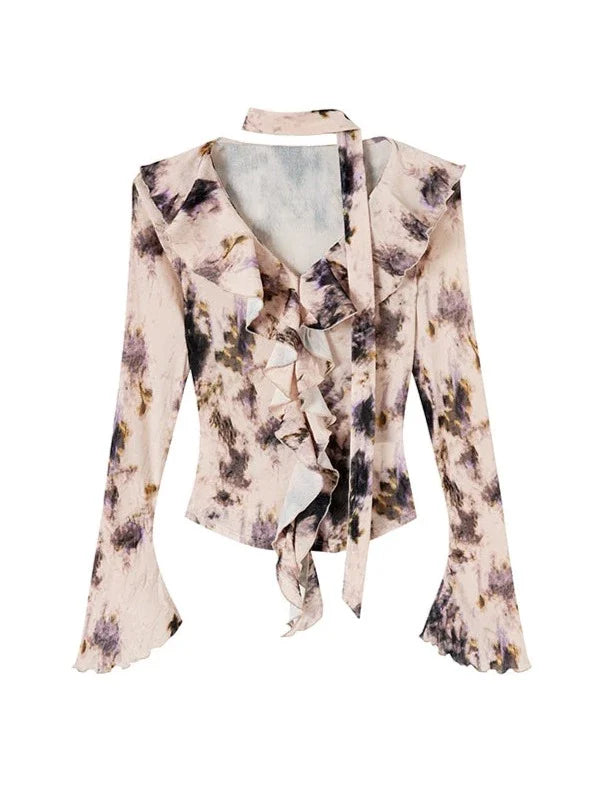 Nischen-Top mit V-Ausschnitt und Rüschendesign