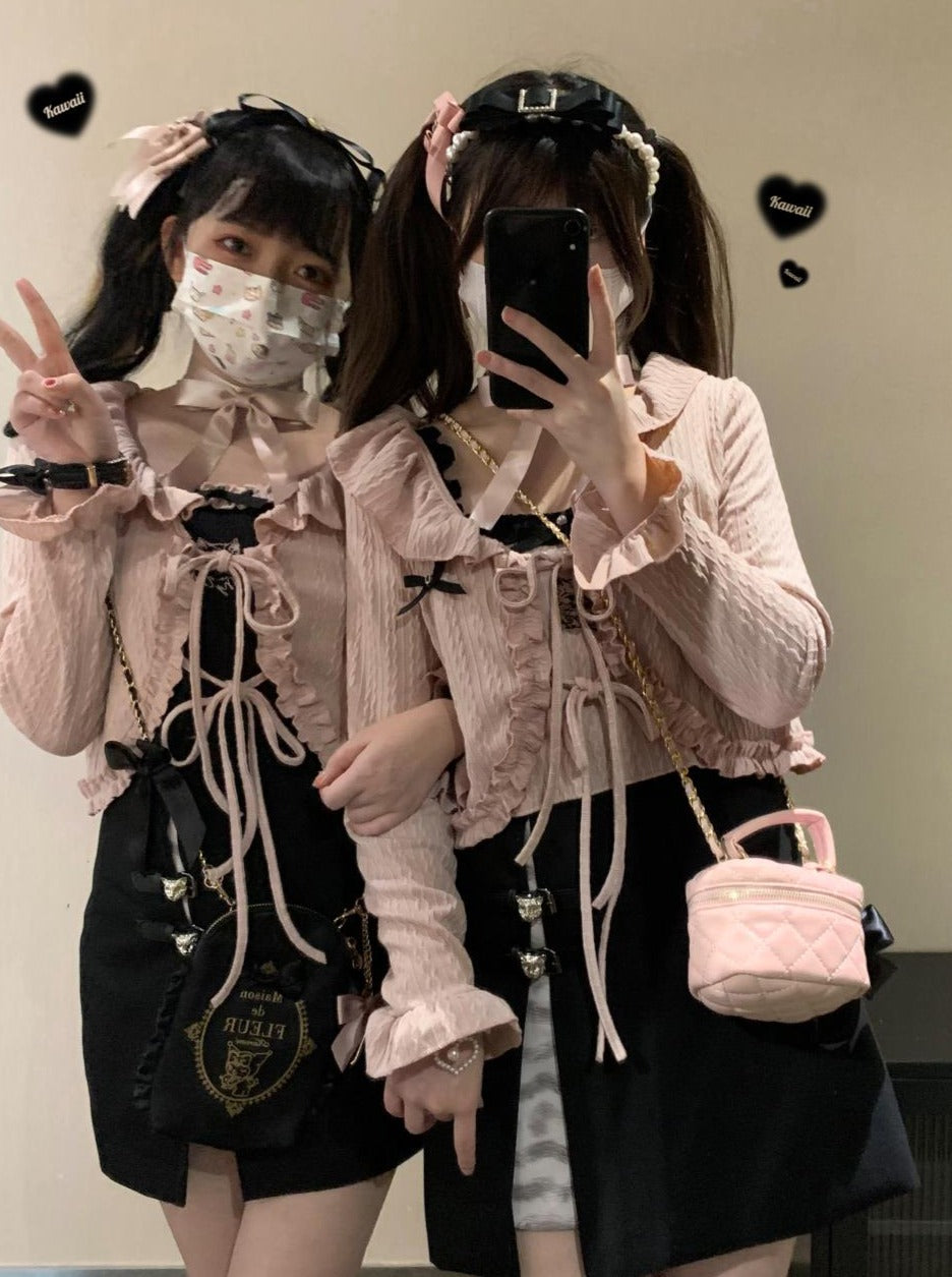 Rosa und weißes Old School Lolita Fashion Kleid Bowknot Detais Lolita JSK Set