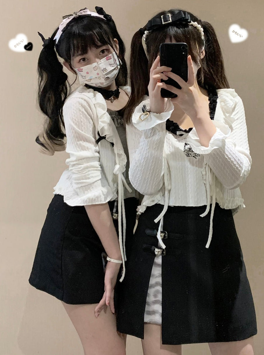 Schwarz-weißes Old School Lolita Fashion Kleid Bowknot Lolita JSK Set