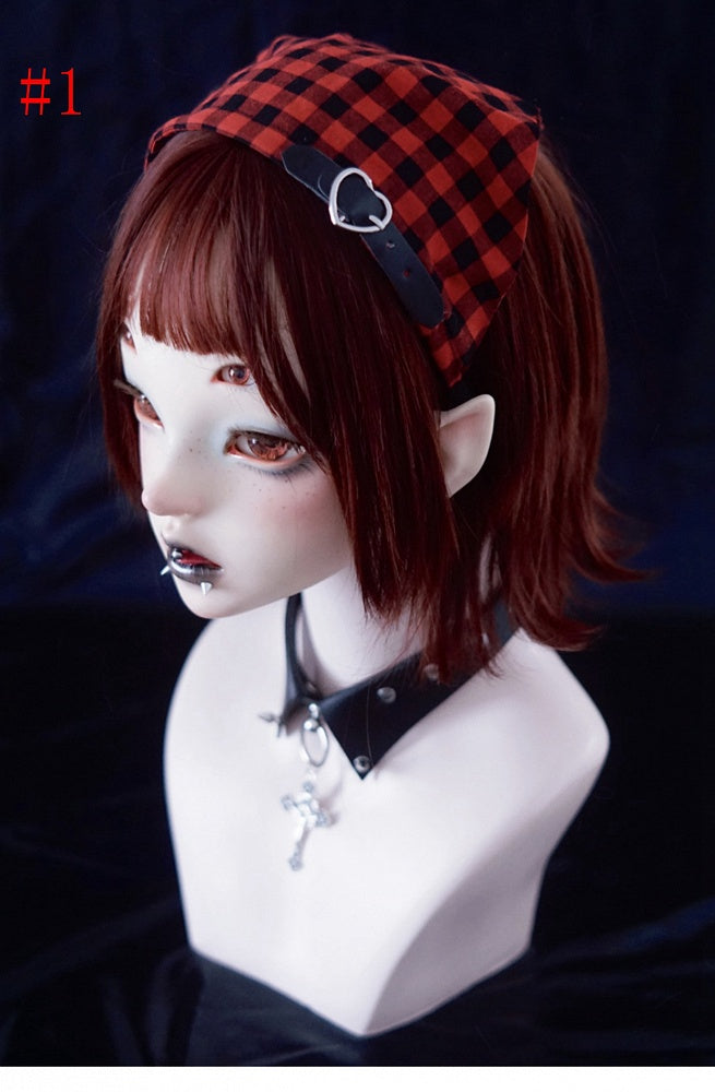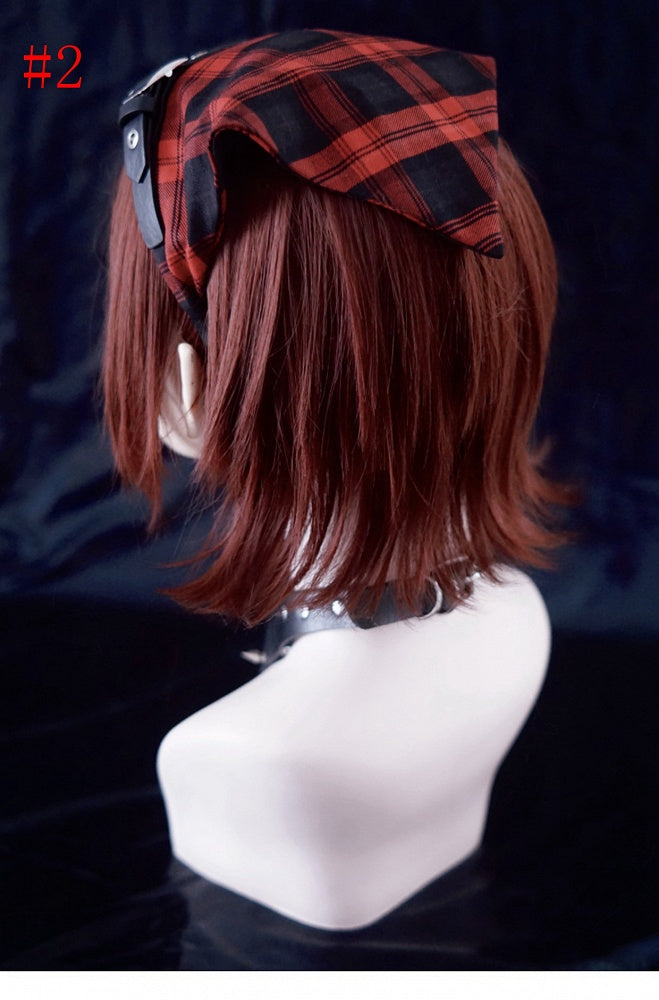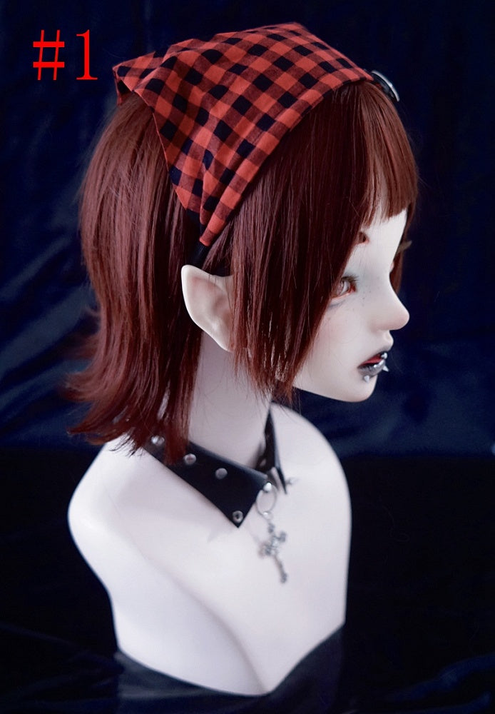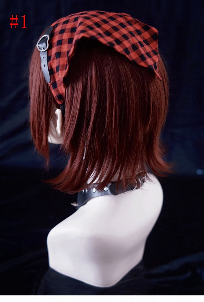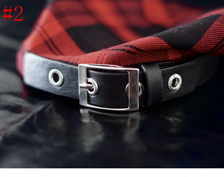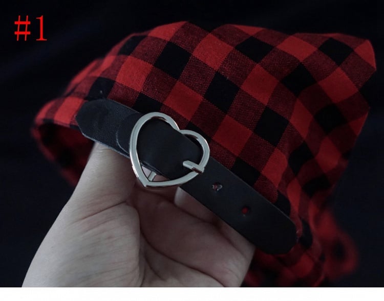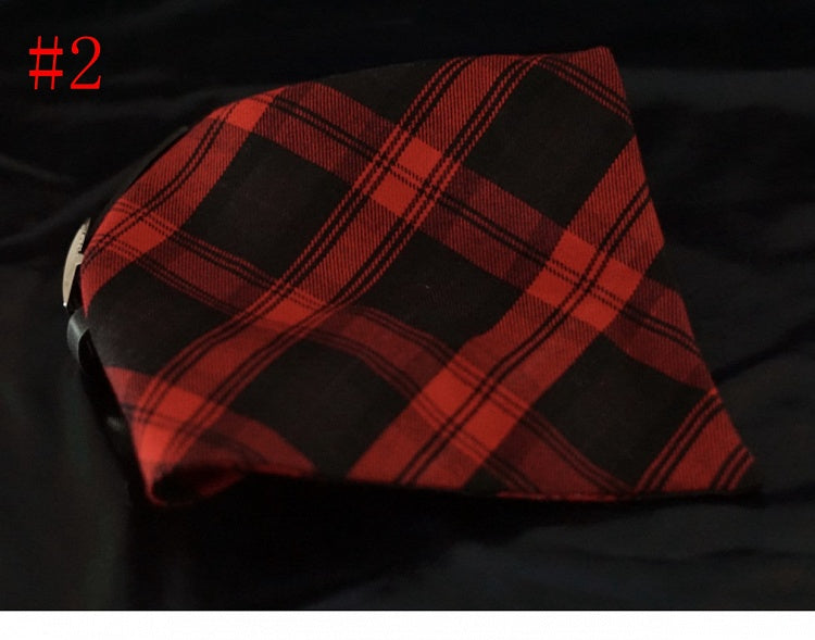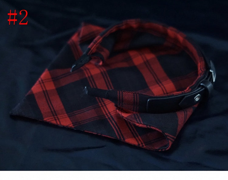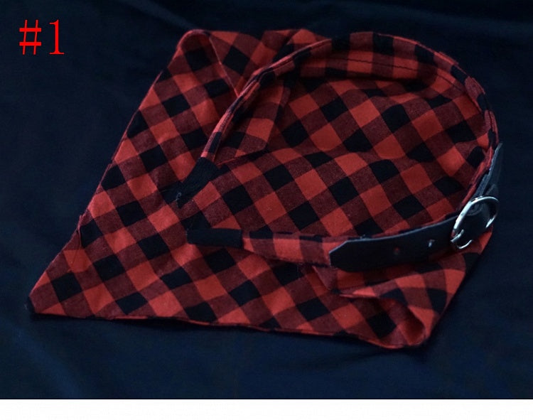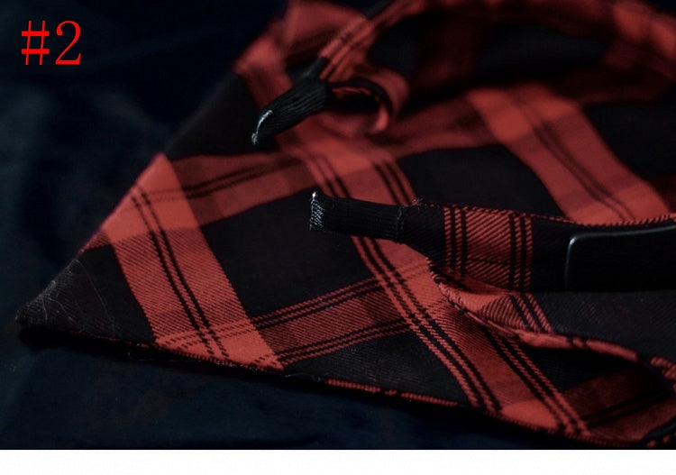 Handgemachter Dreiecksschal mit schwarz-rotem Karomuster KC