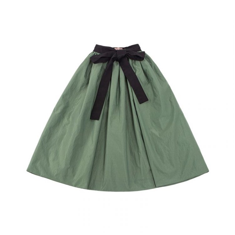 Grüner Rock mit Volantsaum und selbstbindenden Trägern