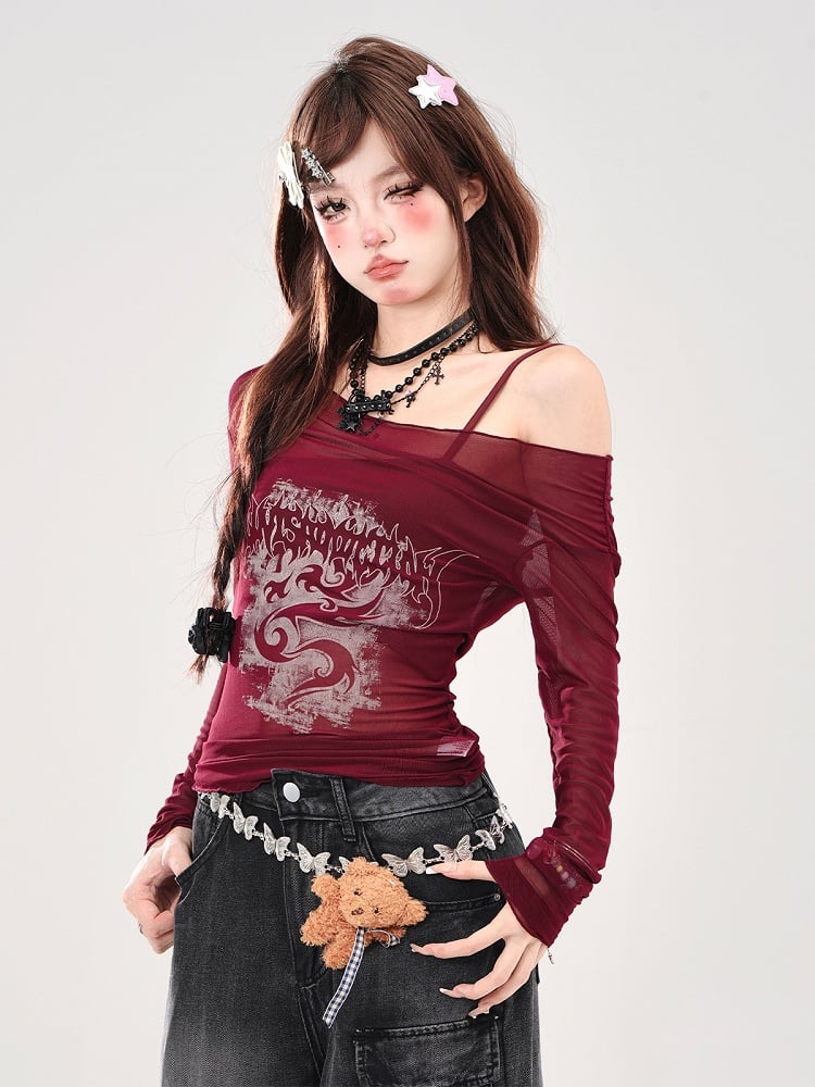 Set Red Sheer Off-Shoulder Sun Protection Top