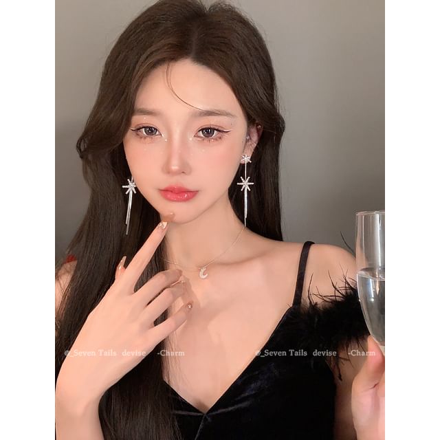Set / Baum Armband Flauschiger Tropfen Weihnachten Schneeflocke Ohrring Choker Kronleuchter