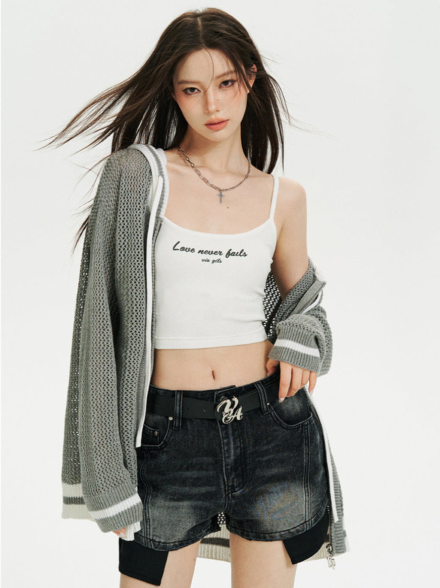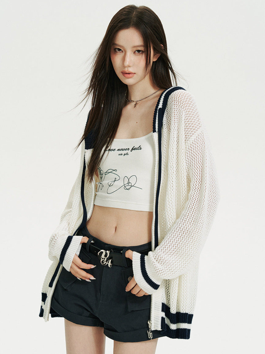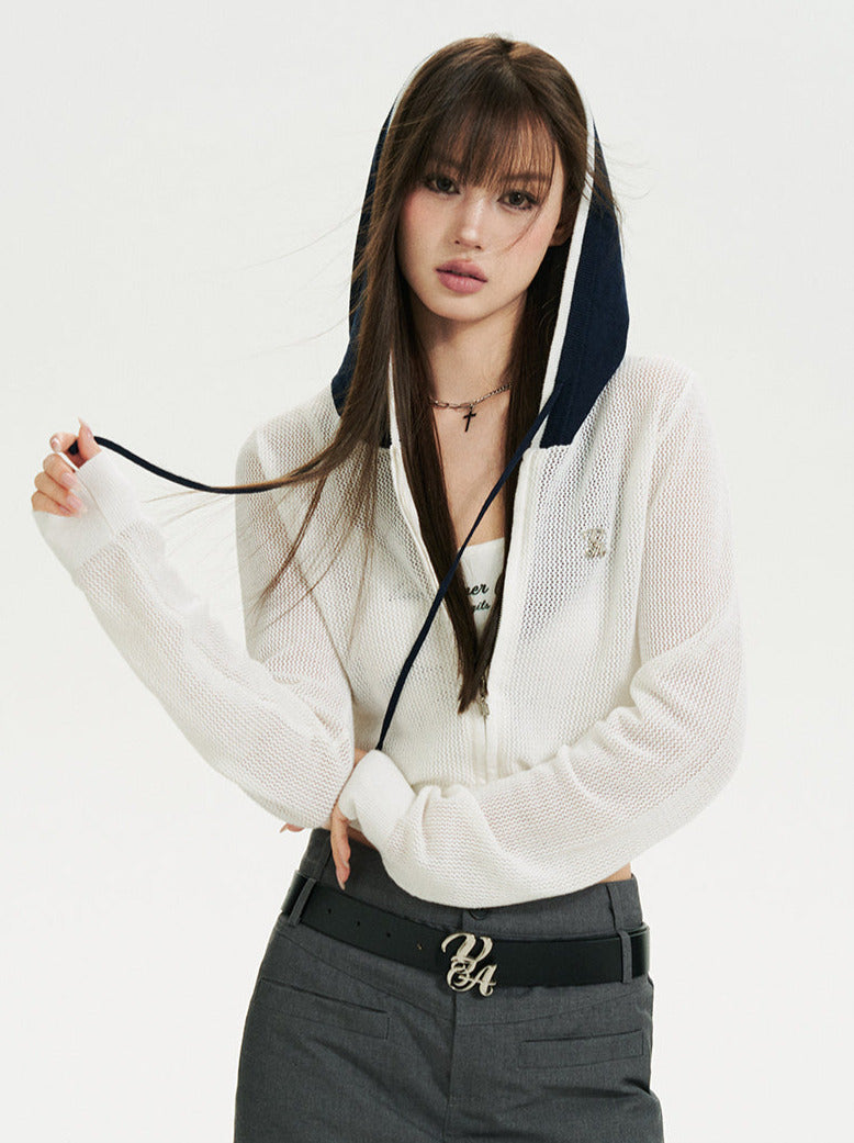 Dieser transparente Zip-Mesh-Strick-Hoodie in Kurz-/Langform verleiht jedem Outfit einen trendigen und süßen Touch. Das leichte Mesh-Material und der Reißverschluss machen ihn zu jeder Jahreszeit vielseitig einsetzbar. Mit diesem einzigartigen Stück bleiben Sie stilvoll und bequem.
