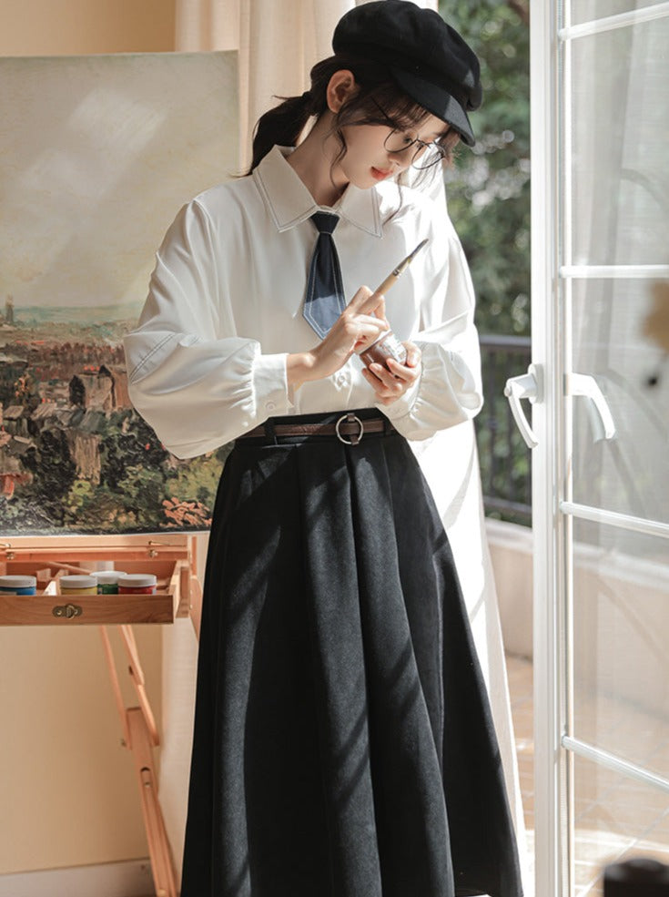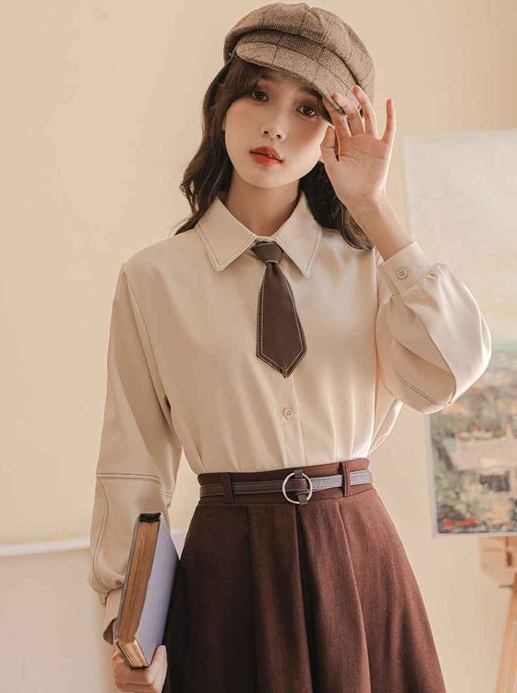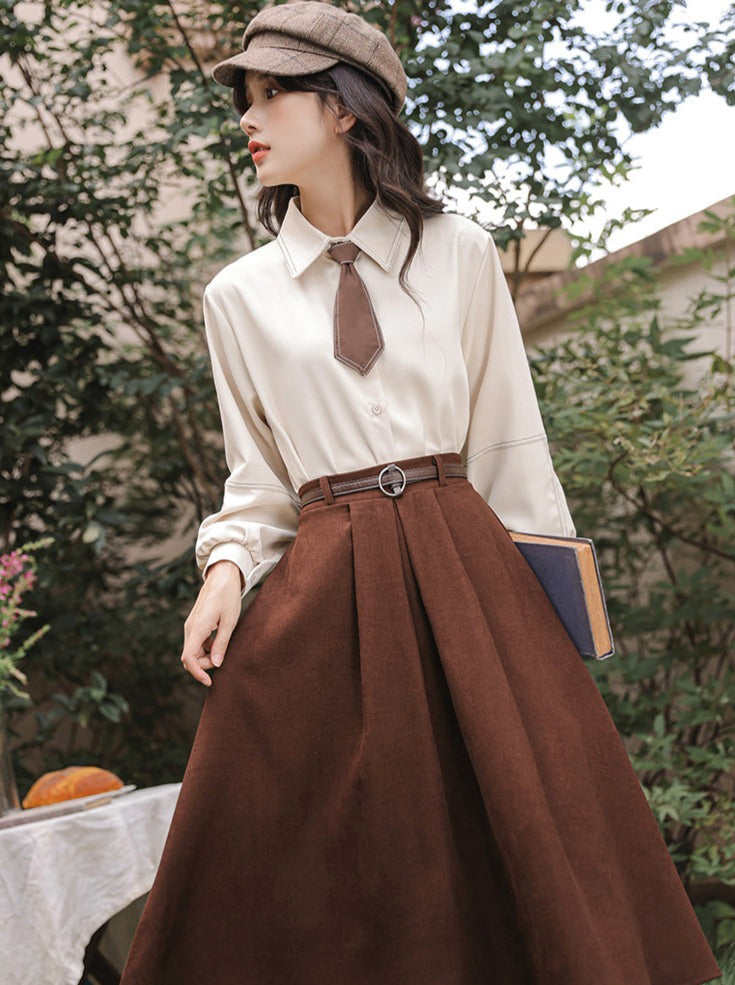Hemd + Rock Ausgestellte Wolle Preppy