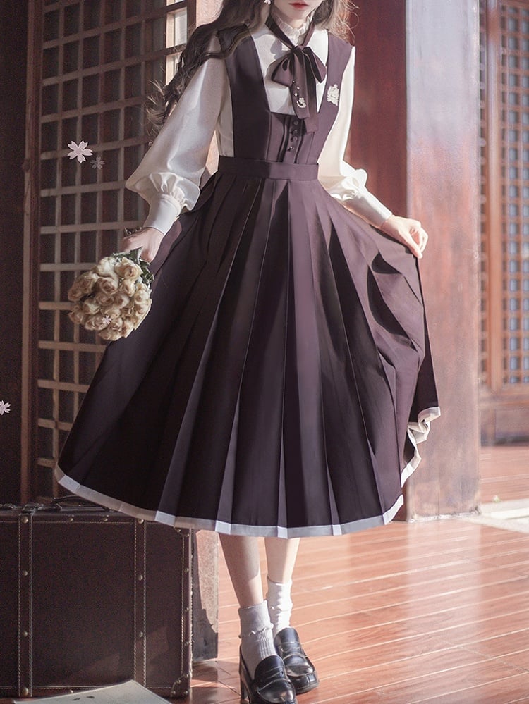 Schwarz-weißes Old School Lolita Fashion Kleid Bowknot Lolita JSK Set
