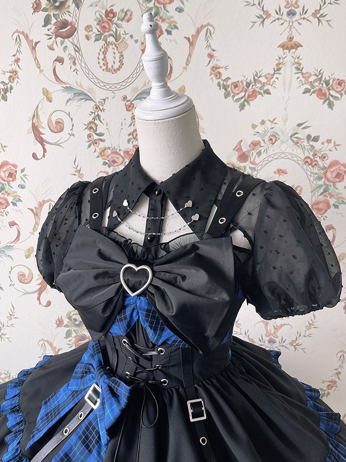 Short Collar Lolita Sheer Fold-over Shirt Sleeves Puff Black