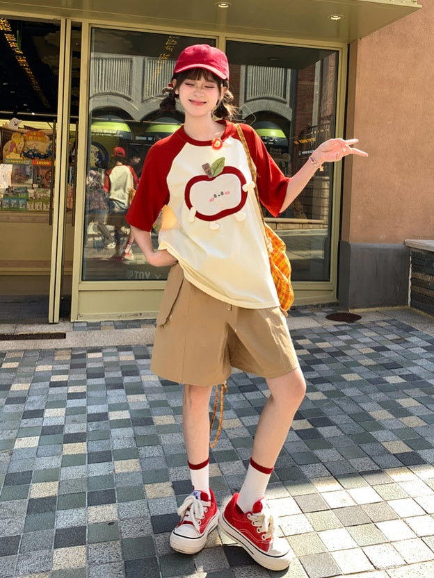 Shorts Khaki Elastischer Bund Gerades Bein Cargo