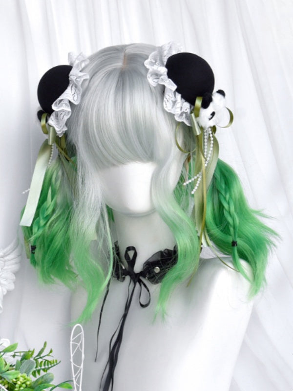 Silbergrüne Ombre-Perücke in Schulterlänge mit gewelltem Pony