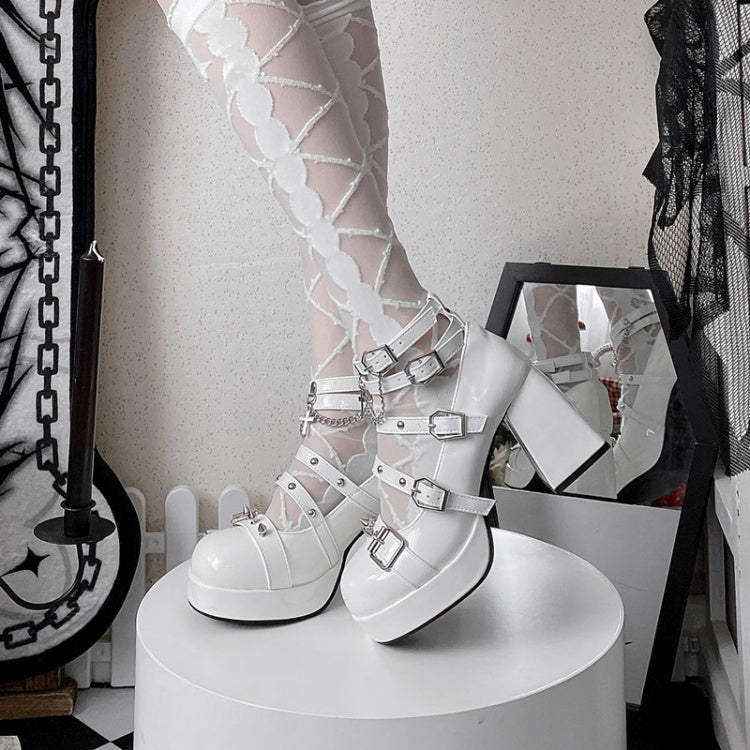 Silberfarbene Nietenketten Punk Weiße Plateauschuhe mit Blockabsatz