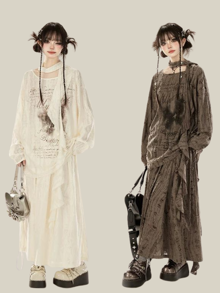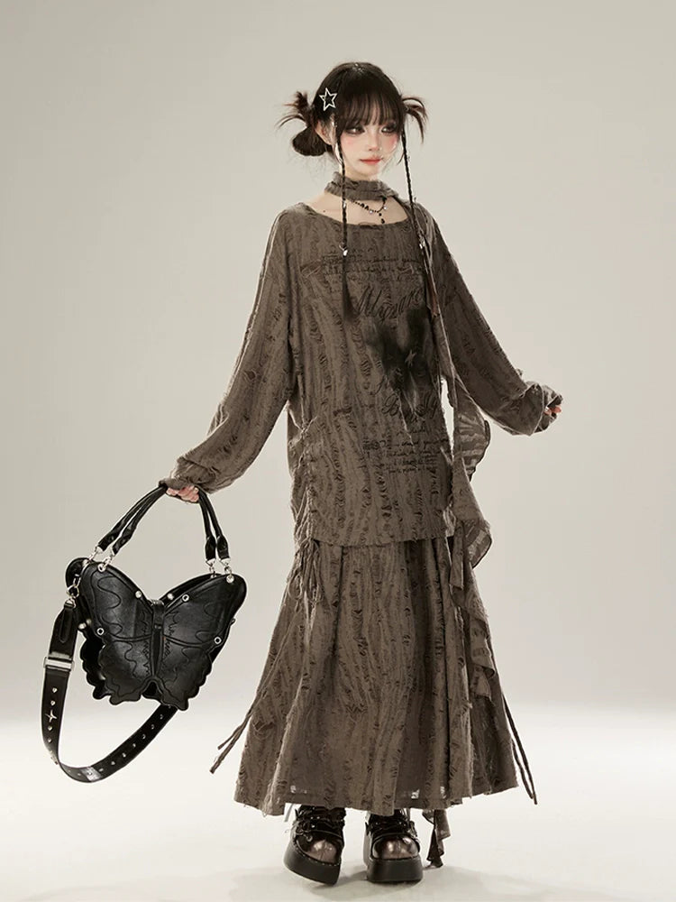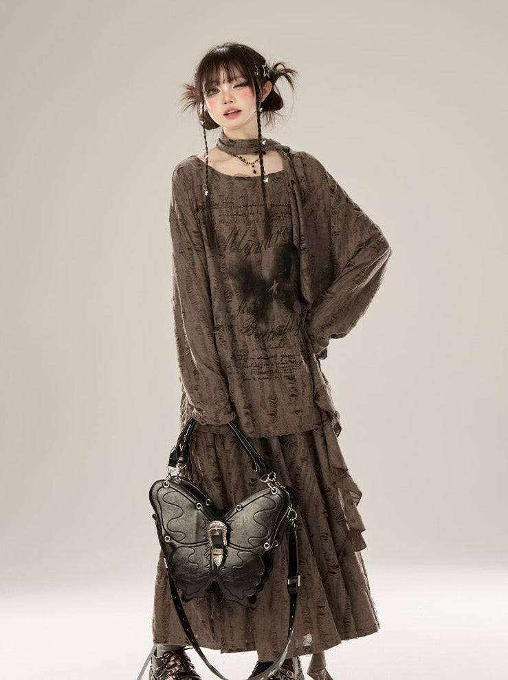 Rock Butterfly Anzug Bluse Style Waystrand Print + Top Swing