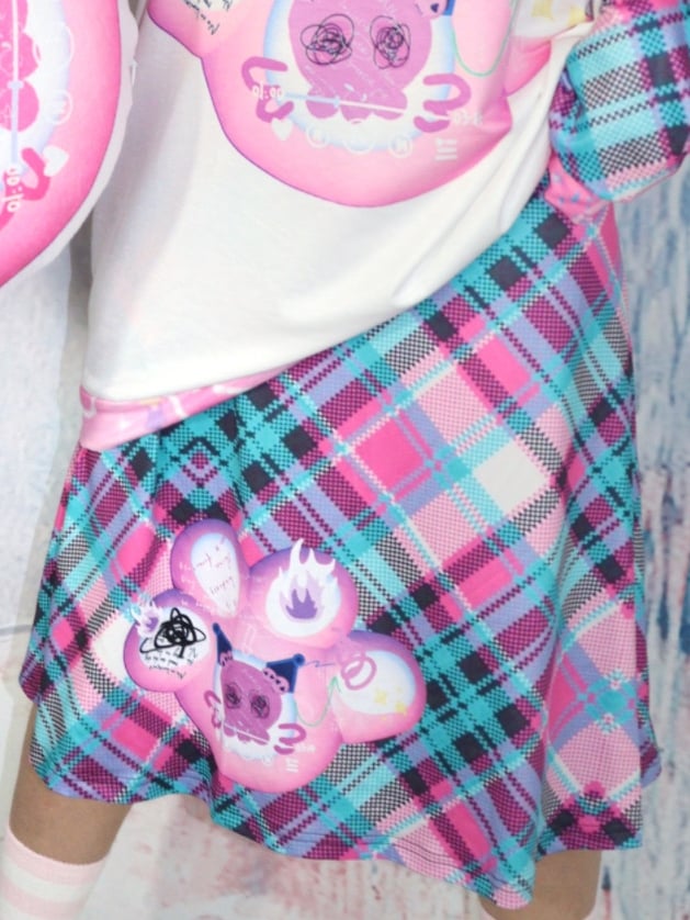Rock Katzenkrallenmuster Y2K Print GrünPink Kariert