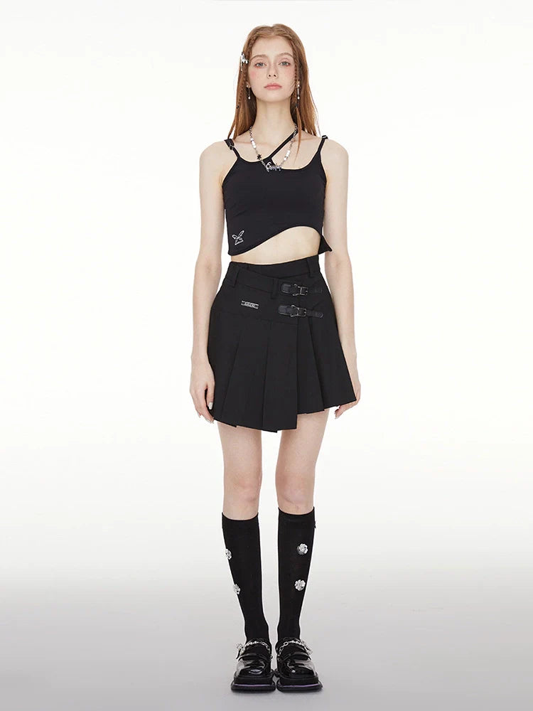 Dieser bezaubernde Rock hat ein asymmetrisches Design mit Faltendetails und einem Knopfverschluss. Perfekt, um jedem Outfit einen Hauch von Einzigartigkeit zu verleihen.