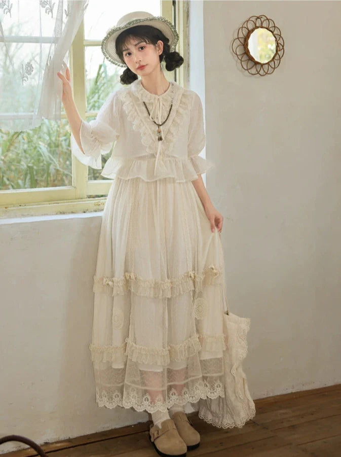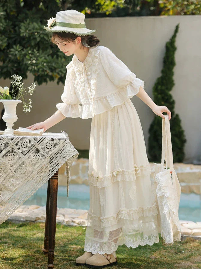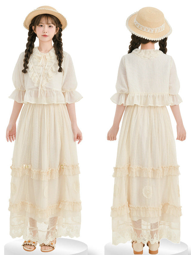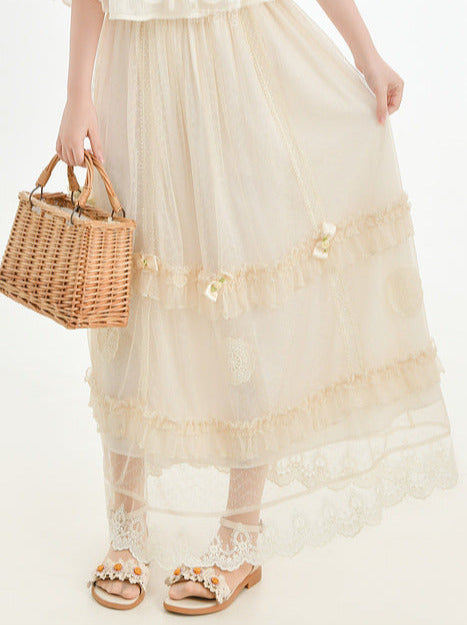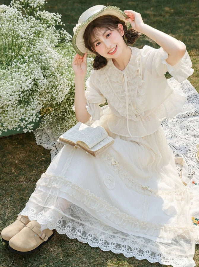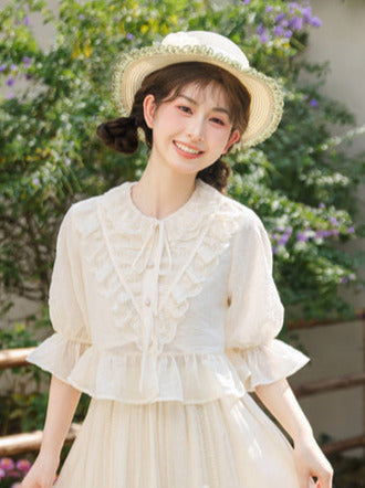Rock Shirt Spitze Wald Französisch Stufen Aprikose