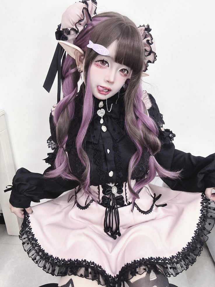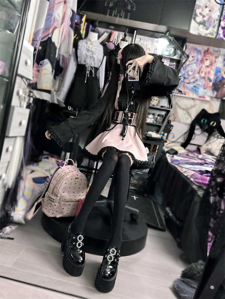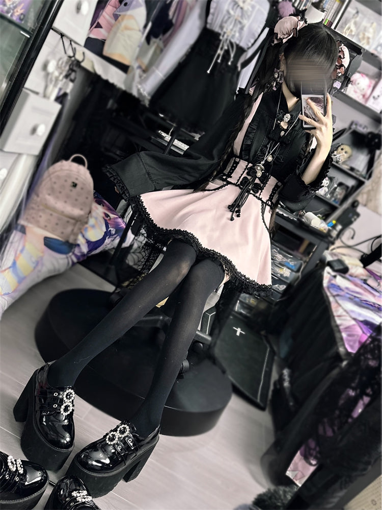Rosa und weißes Old School Lolita Fashion Kleid Bowknot Detais Lolita JSK Set