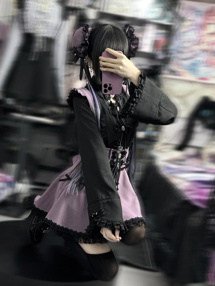 Schwarz-weißes Old School Lolita Fashion Kleid Bowknot Lolita JSK Set