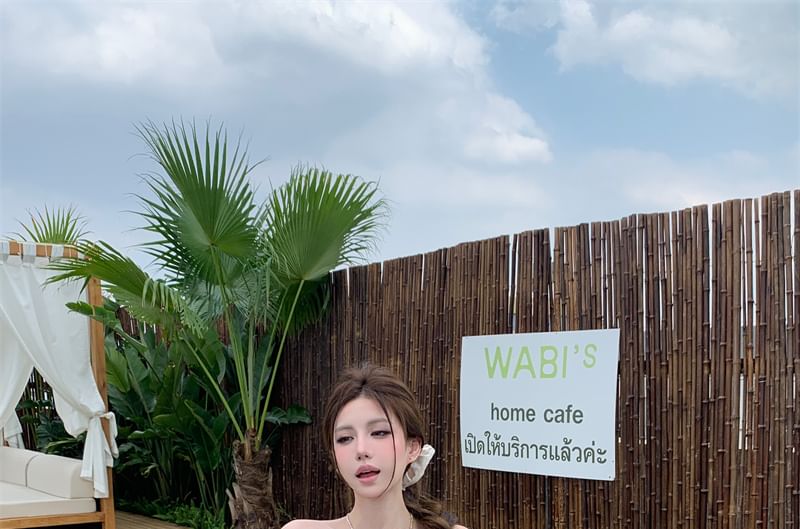 Schlichtes Tube-Top mit Schleife / karierter Mini-Ballonrock in A-Linie mit Kordelzug