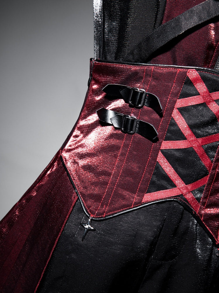 Rock mit Lolita-Korsettträgern, rotem Idol, hohem schwarzem Punk-Gürtel und kaskadierender Rüsche in der Taille