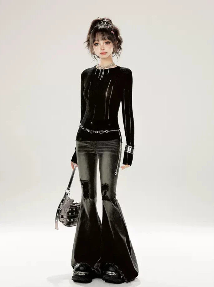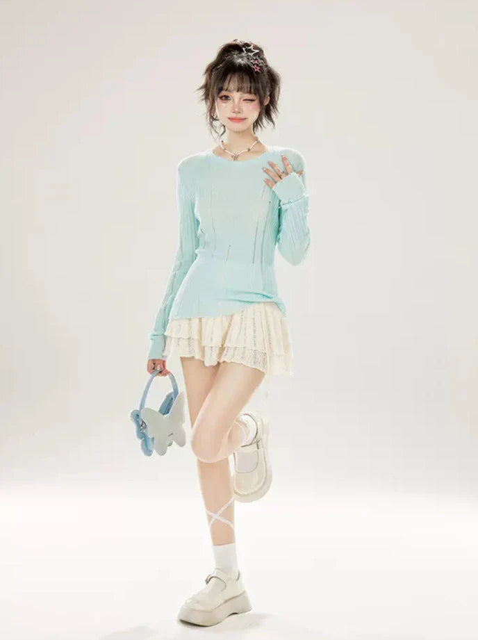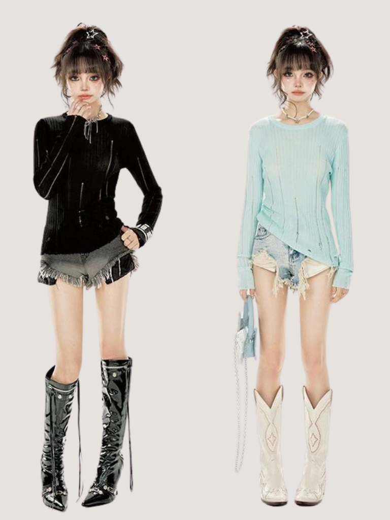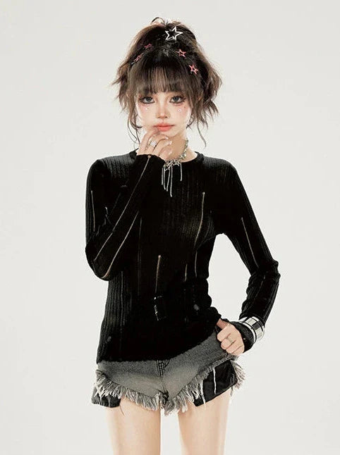 Schmaler Halsausschnitt, Bodenrippin-Strick, unregelmäßiges Sommeroberteil