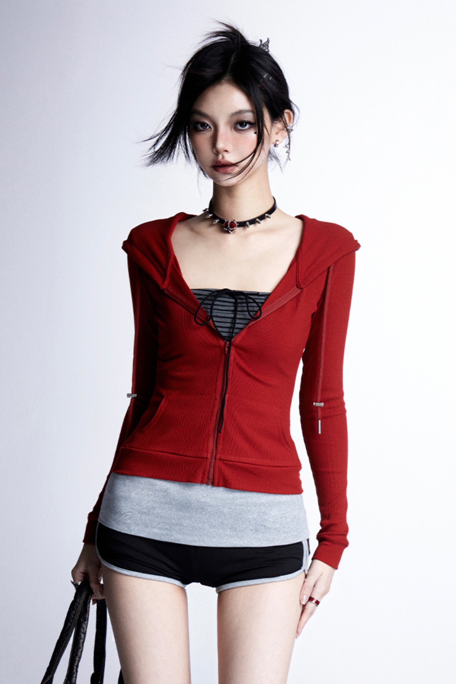 ❤Schlankes Kapuzenoberteil mit Reißverschluss ❤