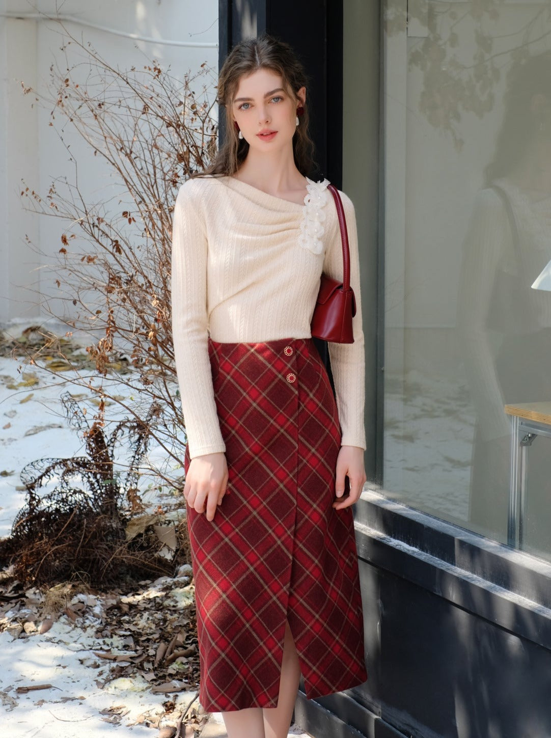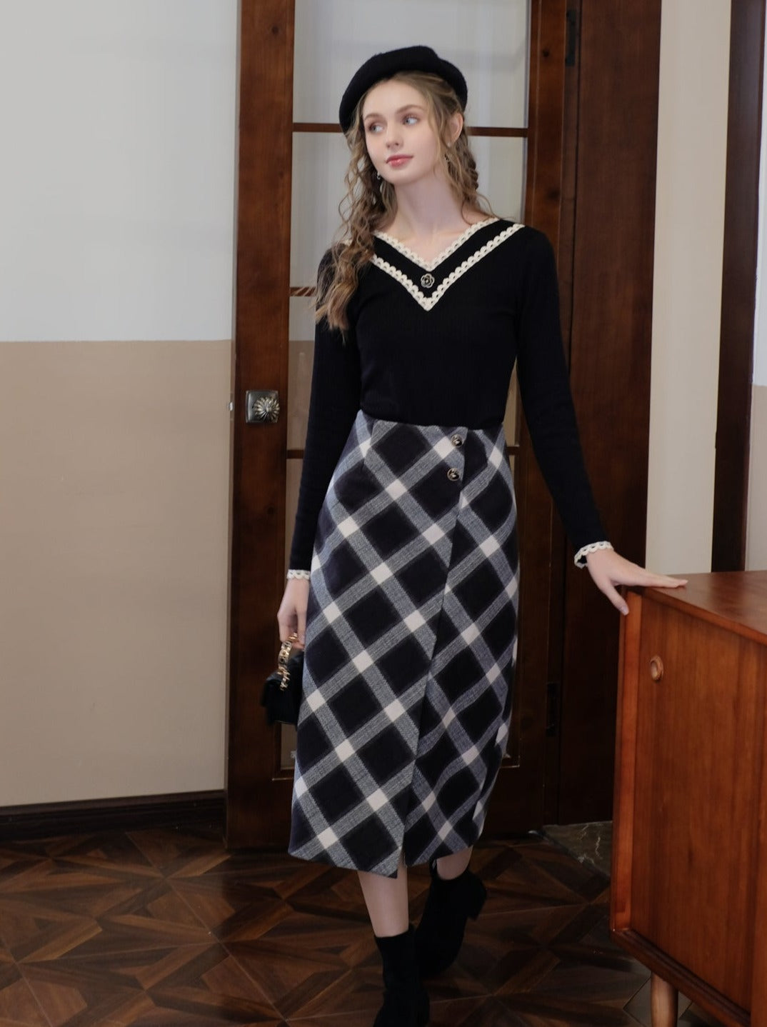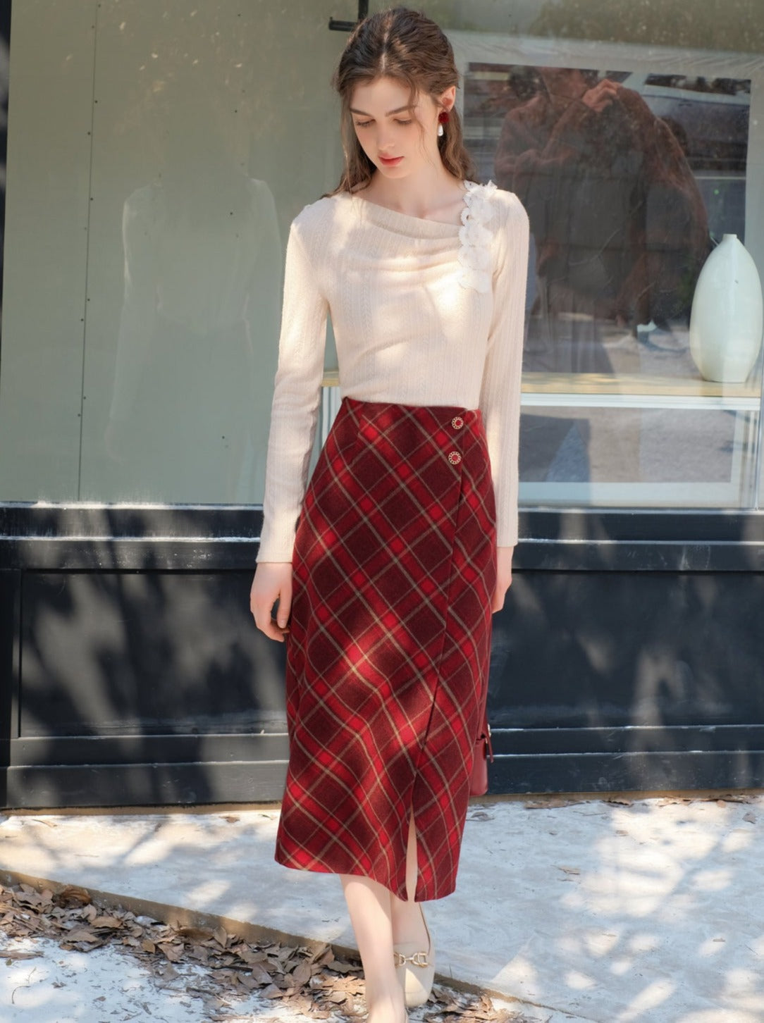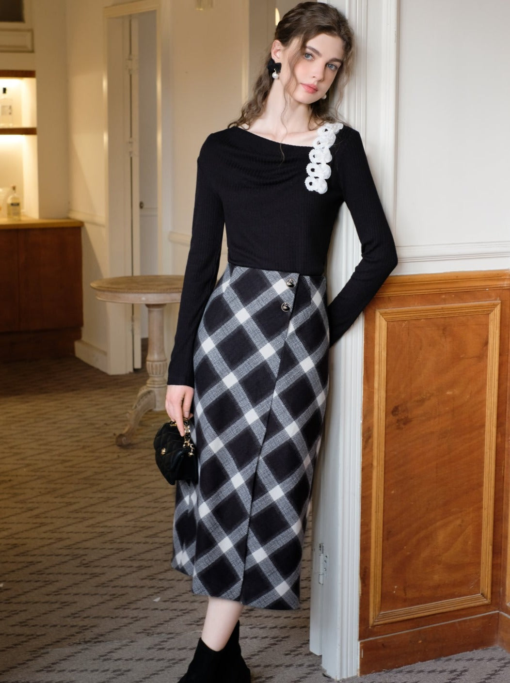 Machen Sie sich bereit, mit diesem süßen und stylischen Slit Argyle Retro Rock alle Blicke auf sich zu ziehen! Das French-Long-Design verleiht einen Hauch von Eleganz, während der Schlitz und das Argyle-Muster für ein Retro-Feeling sorgen. Perfekt, um aus der Masse hervorzustechen und ein Statement zu setzen.