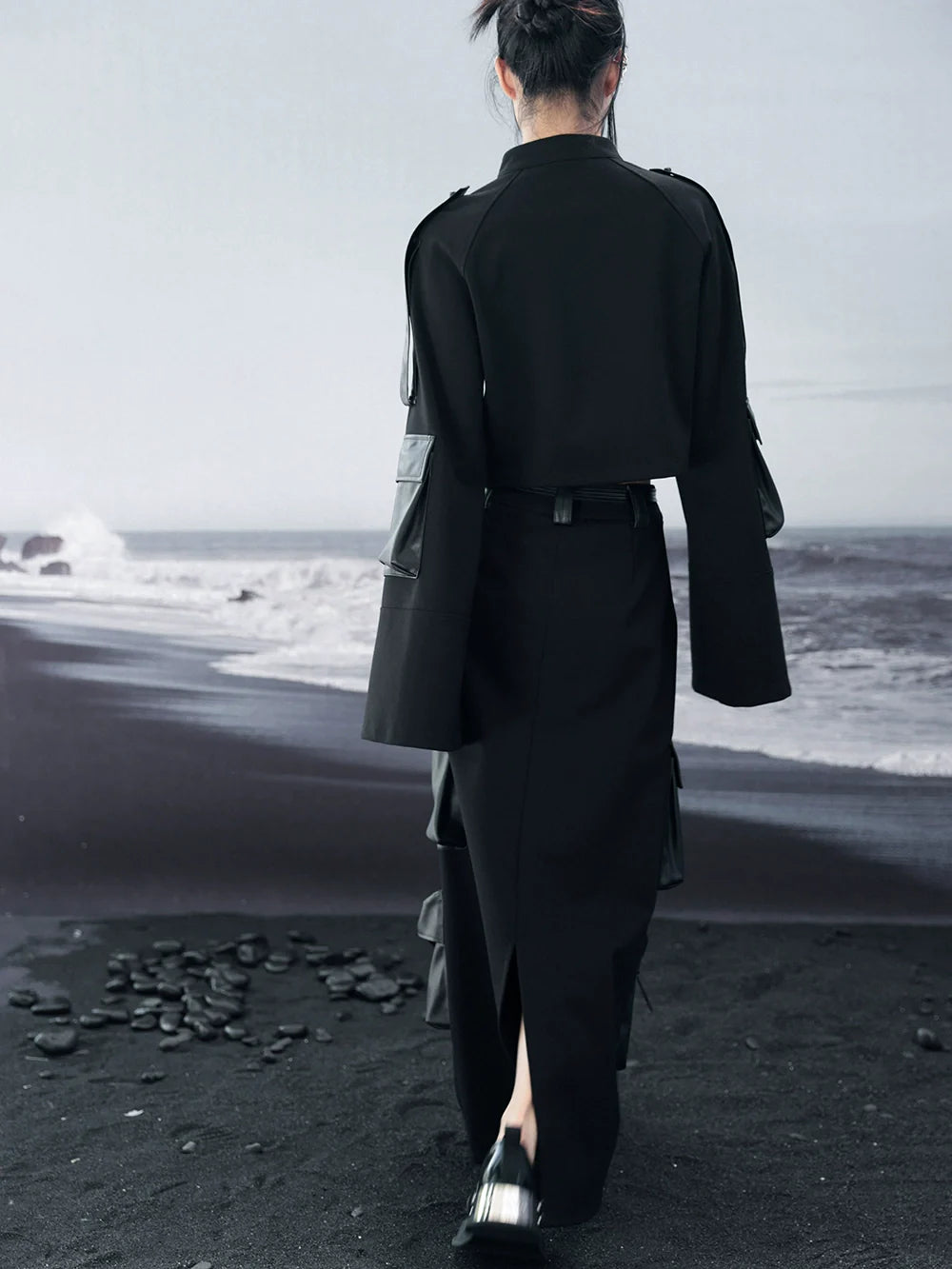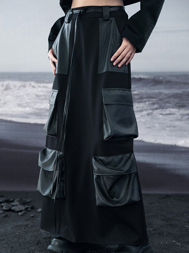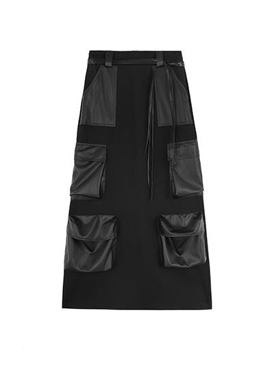 Schlitz Großer Stricktaschen Lederrock Dunkel