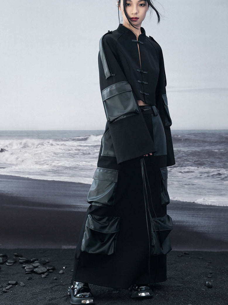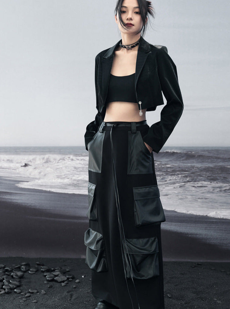 Dieser süße Lederrock mit Schlitz und großer Stricktasche ist der perfekte Begleiter für jeden Anlass. Der weiche, kuschelige Strickstoff in Kombination mit dem stylischen Schlitz und der kantigen Ledertasche ist eine einzigartige und schöne Ergänzung für Ihre Garderobe. Bleiben Sie warm und modisch mit diesem bezaubernden Rock.