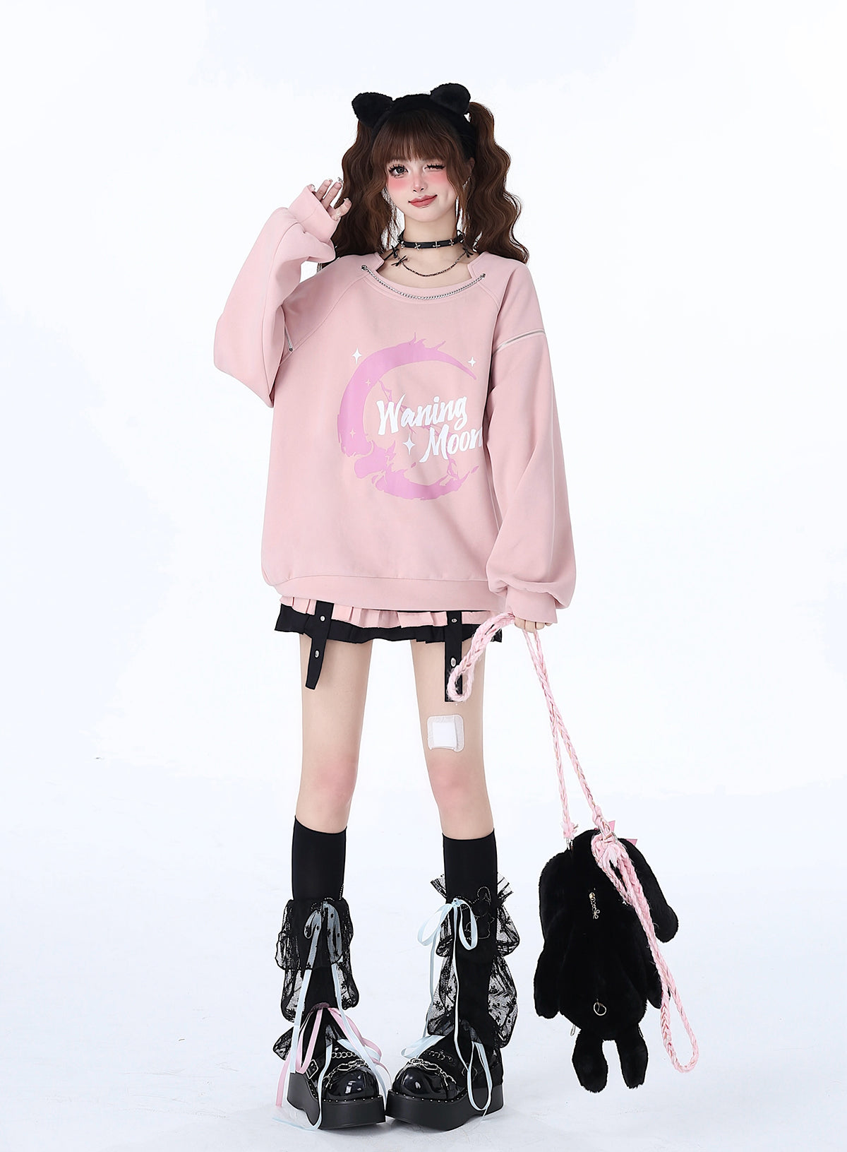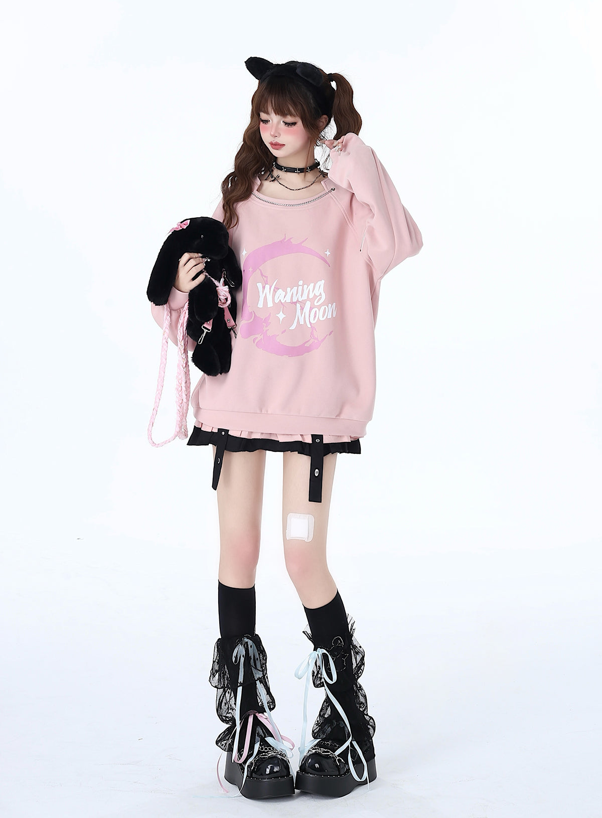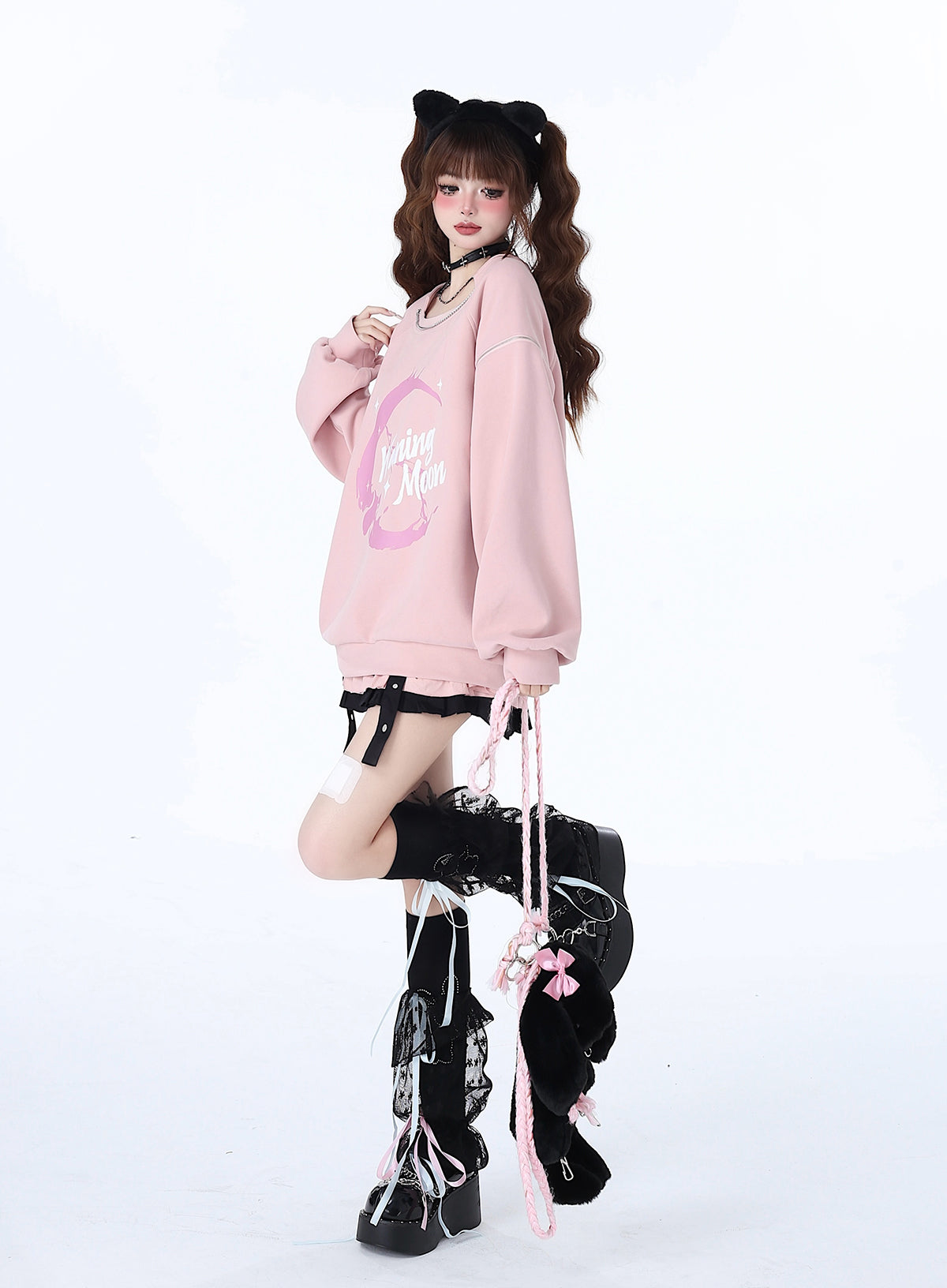 Weiß-rosa Lolita-Haube-Halsband
