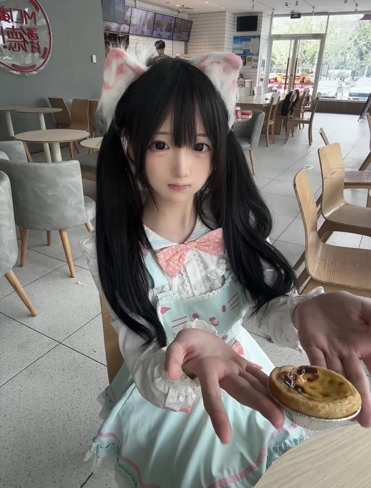 Soft Mint Green Adorable Cat Embroidered Overall Dress / White Sailor Collar Blouse