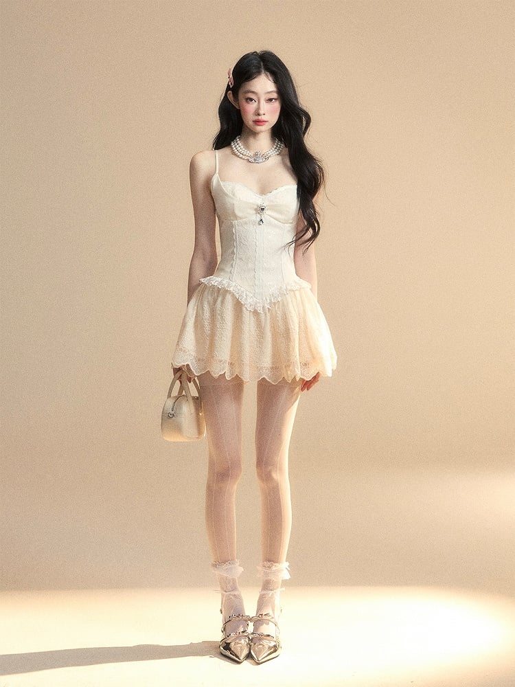 Spaghettiträgerkleid Apricot Herzförmiger Ausschnitt Baskische Taille Puffy