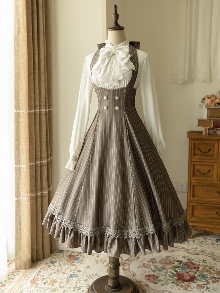 Schwarz-weißes Old School Lolita Fashion Kleid Bowknot Lolita JSK Set