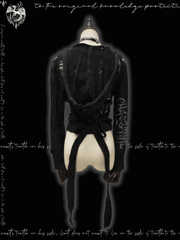 Strap Punk Schwarz Distressed Löcher mit Kapuze Strickjacke Glamouröse Selbst-krawatte