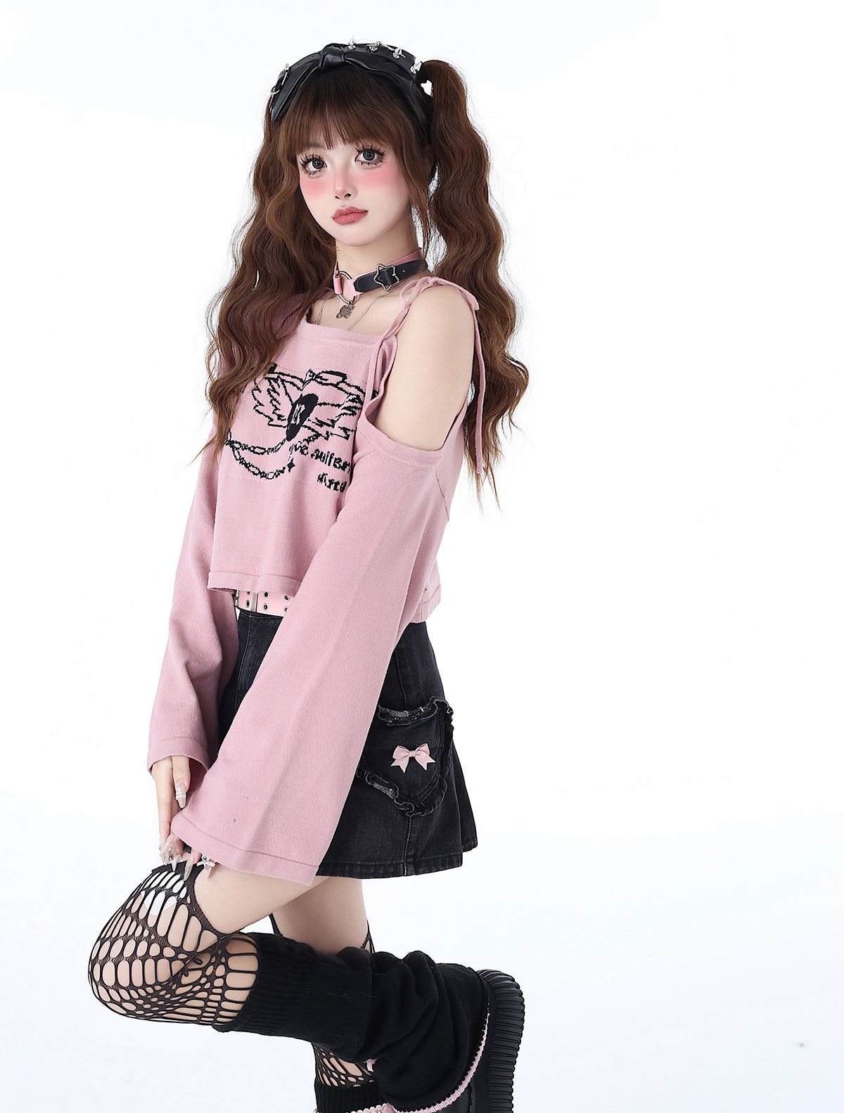 Kurzes, schulterfreies Top aus Strick mit Trägern