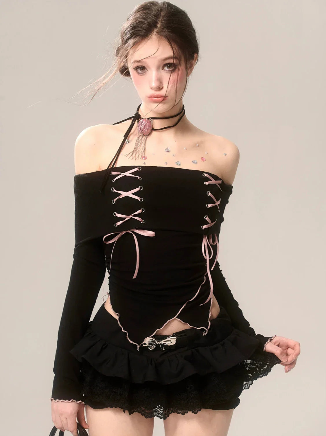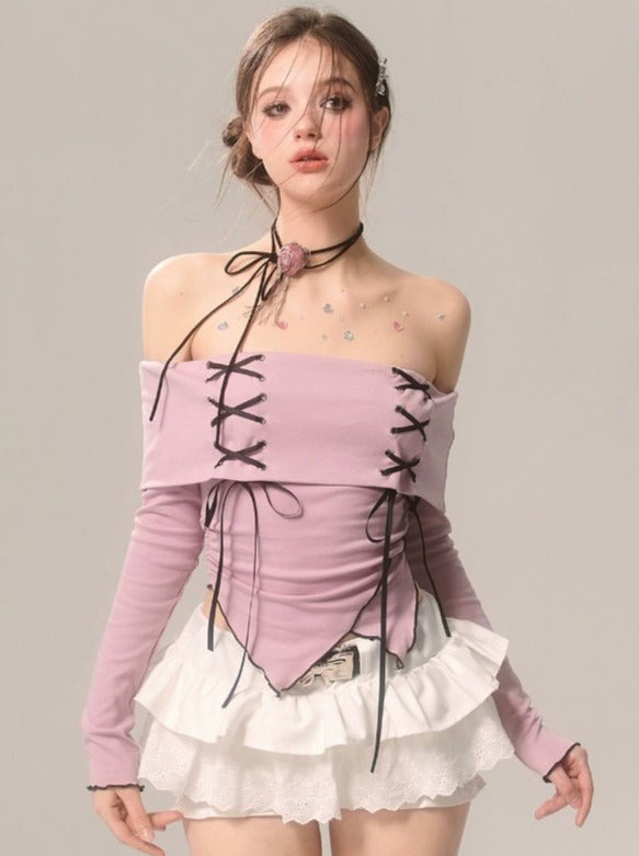 Dieses schulterfreie Top mit Trägern besticht durch sein charmantes Schleifen- und Rüschendesign und verleiht ihm einen hochwertigen und bezaubernden Look. Perfekt für jeden Anlass, verleiht es Ihrem Outfit einen Hauch von Eleganz. Verabschieden Sie sich von langweiligen Tops und begrüßen Sie dieses stylische und süße Stück.