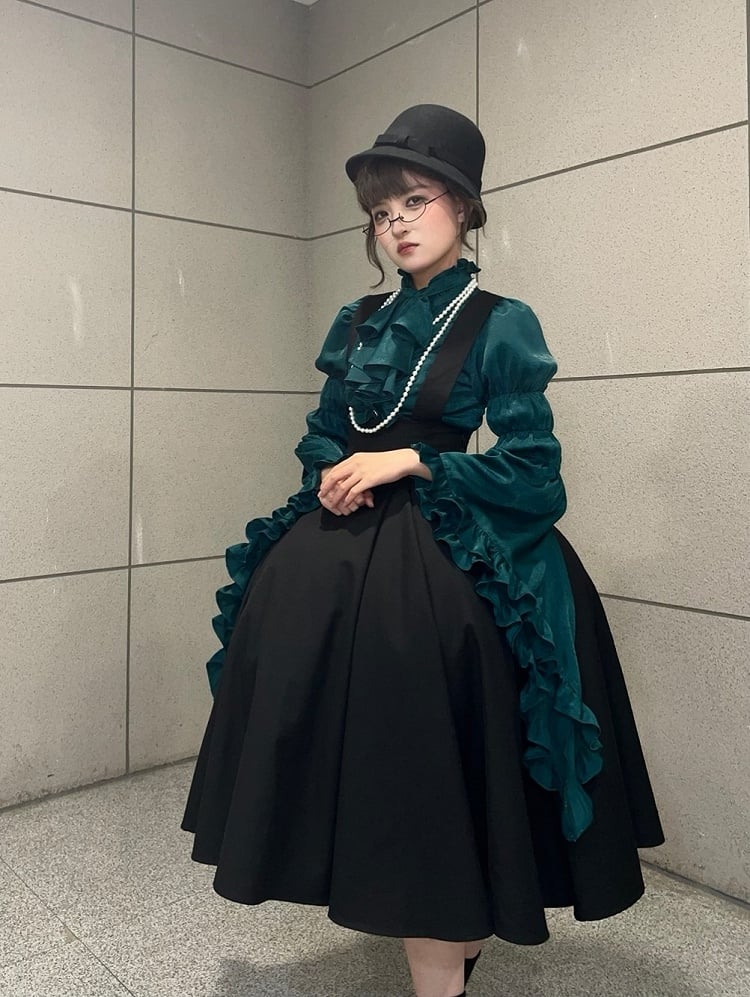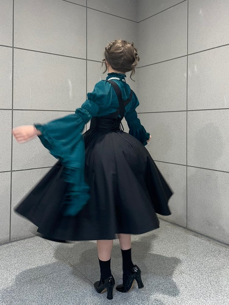 Black High Waist Adjustable Straps Lolita Overall Skirt Long Version