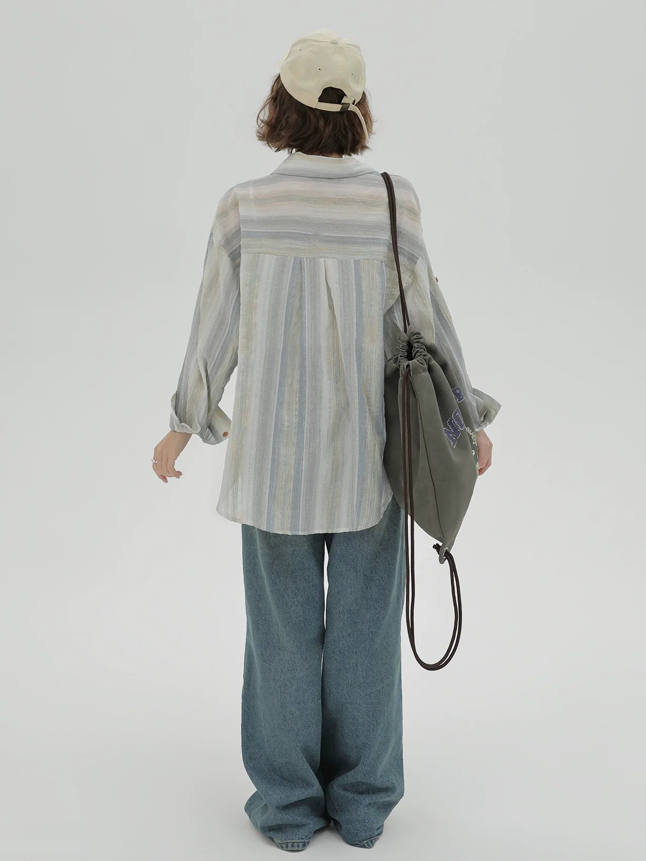 Gestreiftes Kragenhemd mit lockerem Kontrast
